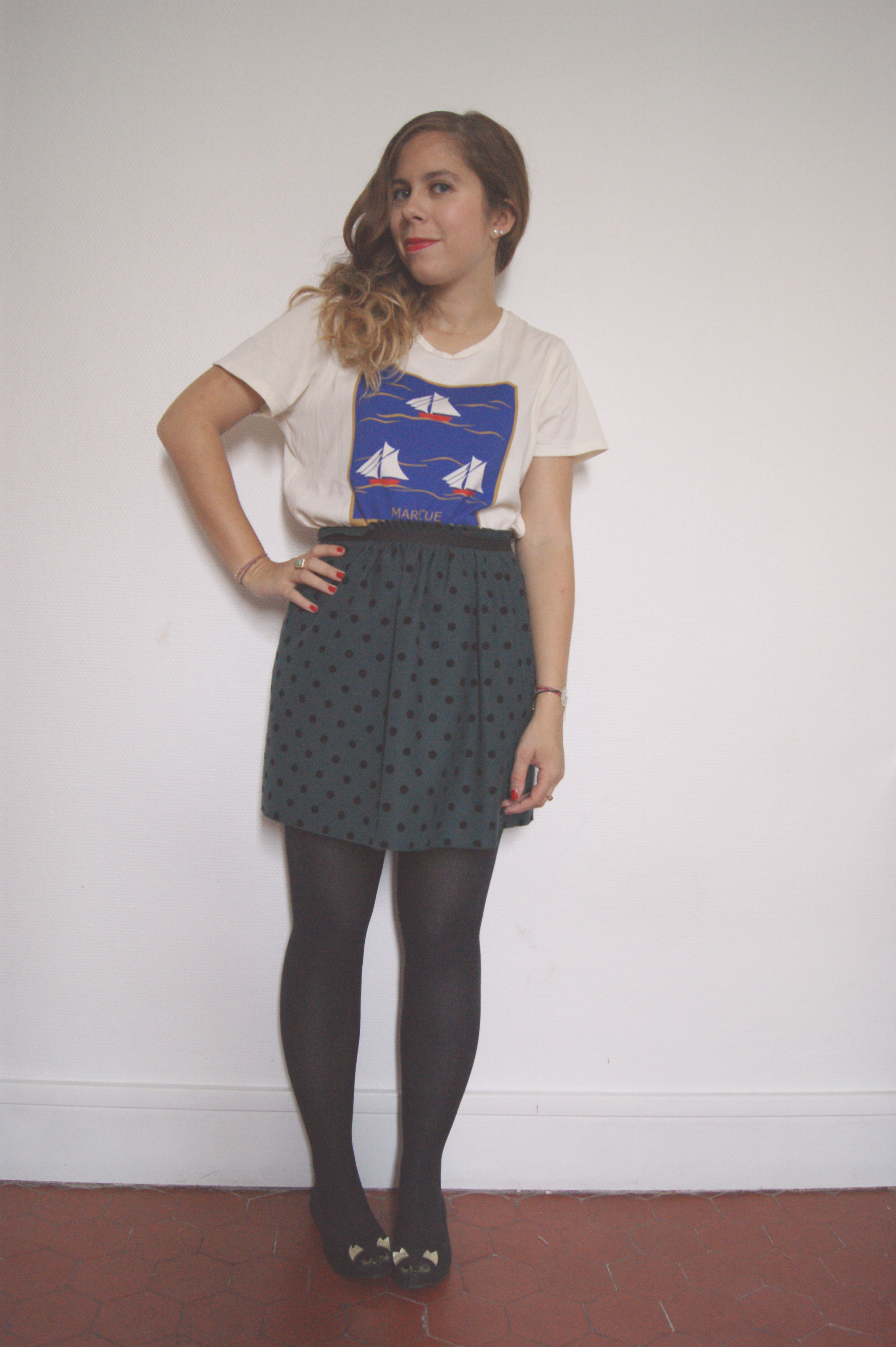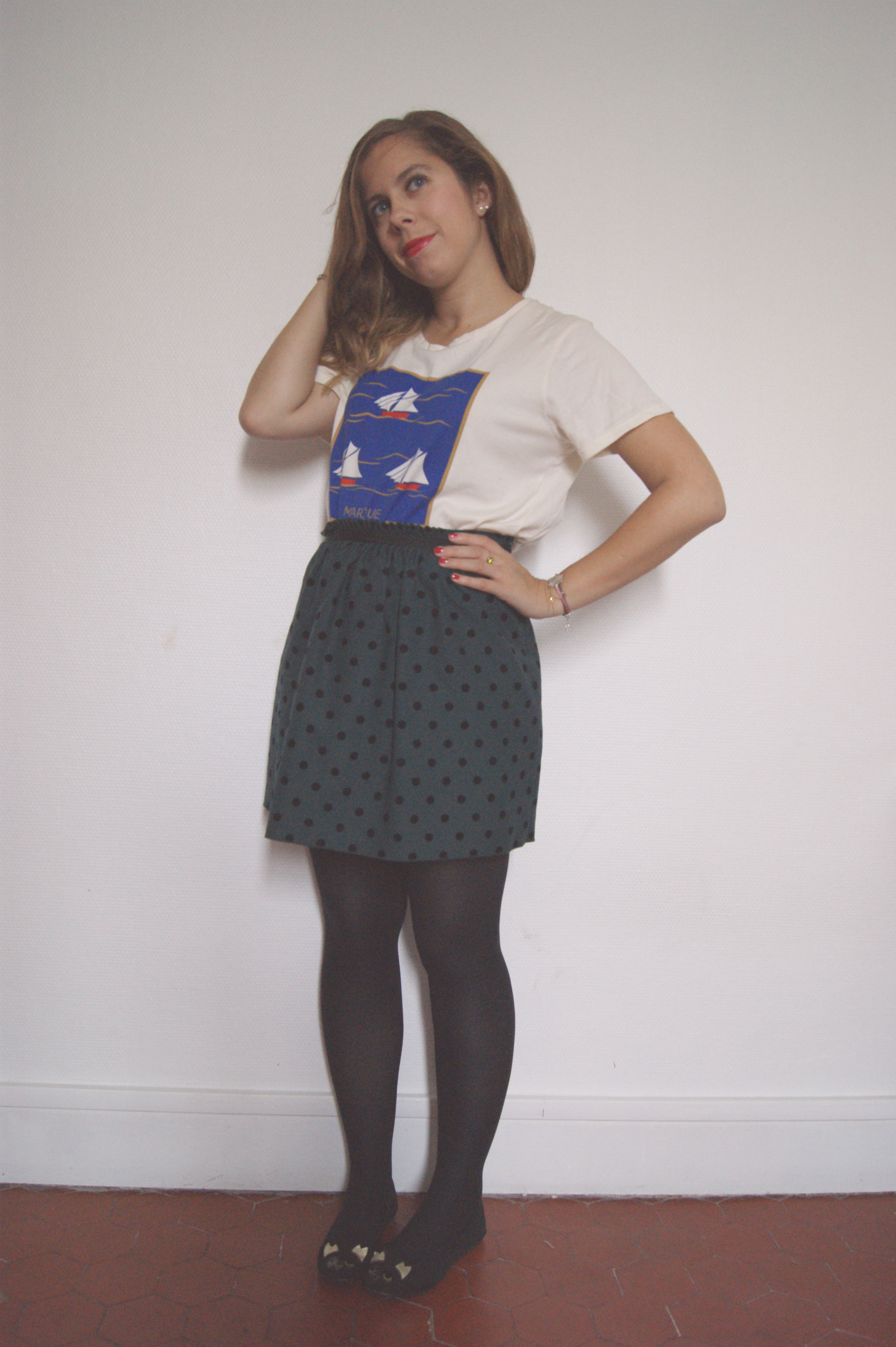Ta jupe à pois est superbe! Et j’aime beaucoup le t-shirt aussi :)