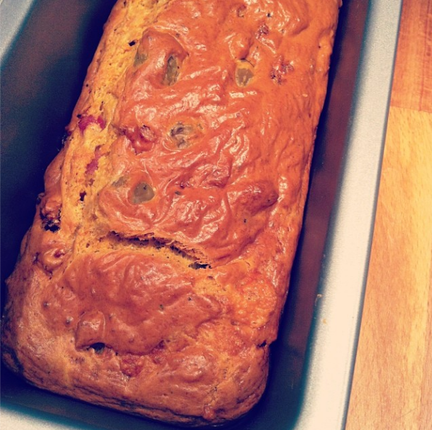 Versez dans un moule à cake et enfournez pendant 45 minutes ! Si votre moule n’est pas anti-adhésif, graissez le légèrement avec un peu de beurre pour éviter que le moule accroche.