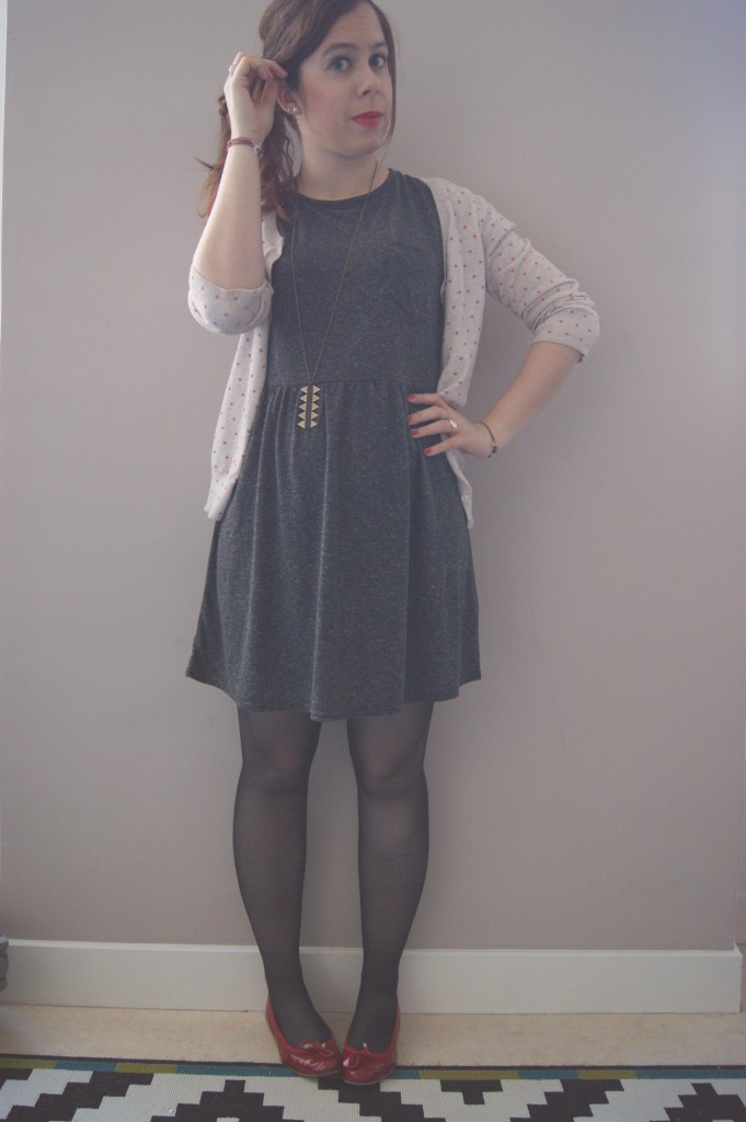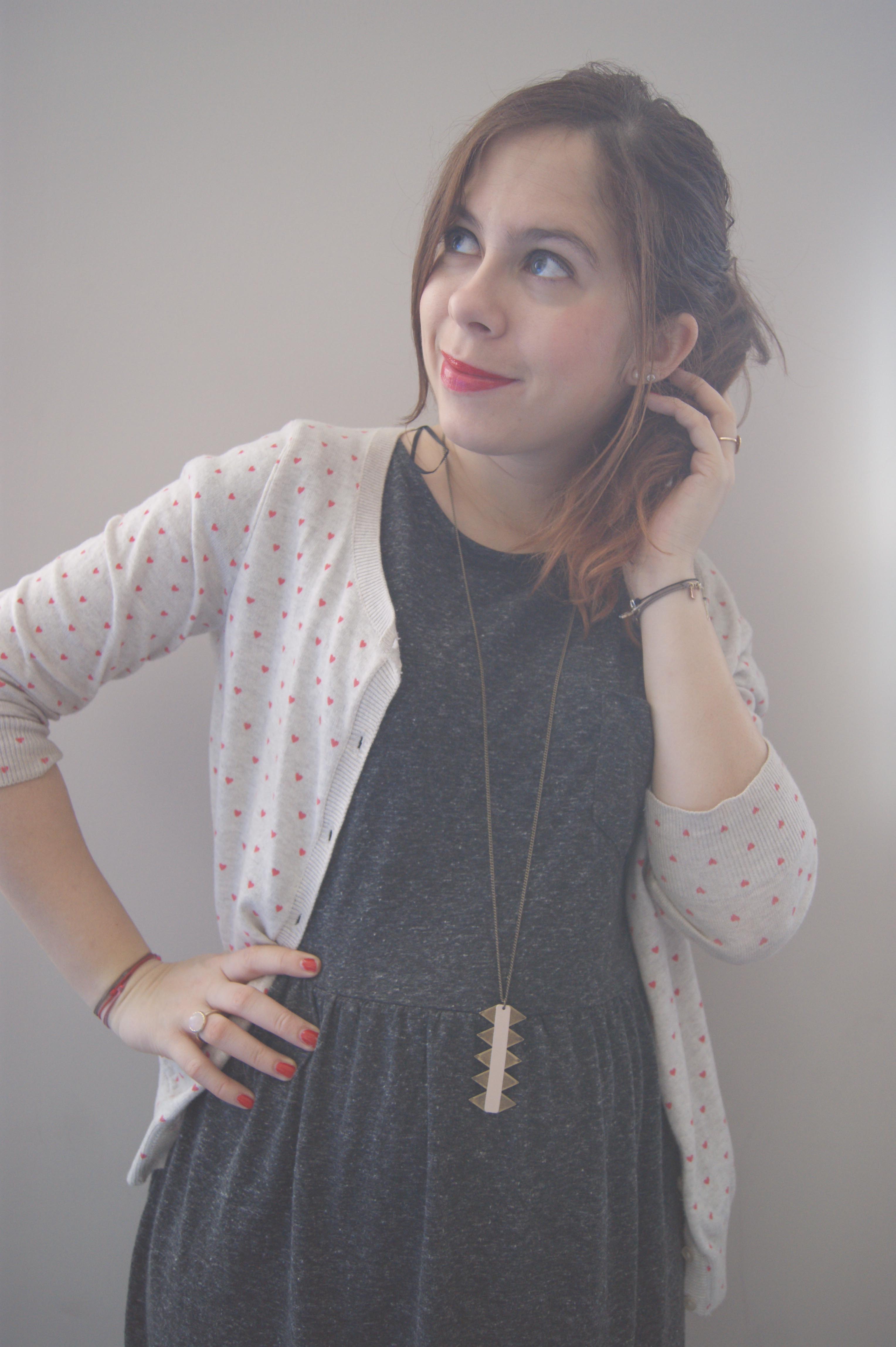 Gilet à coeurs, robe patineuse, ballerines, tout ce que j’aime dans tes looks :)