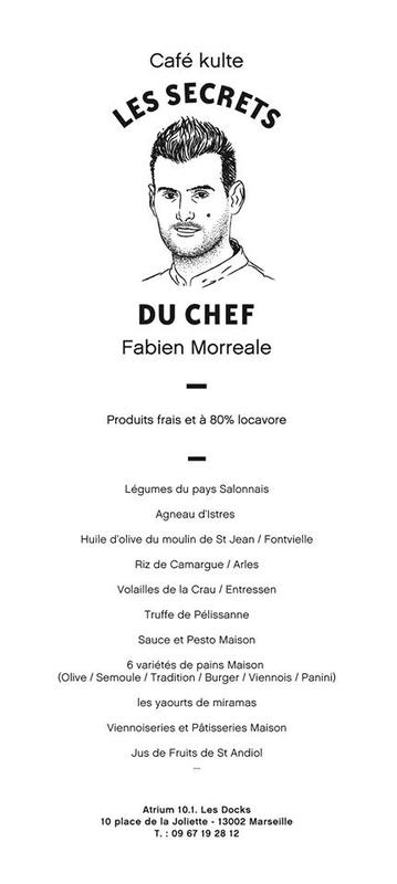 Café Kulte 10 place de la Joliette Marseille 13002 Tel : 09 67 19 28 12 Ouvert du lundi au vendredi de 7h à 17h
