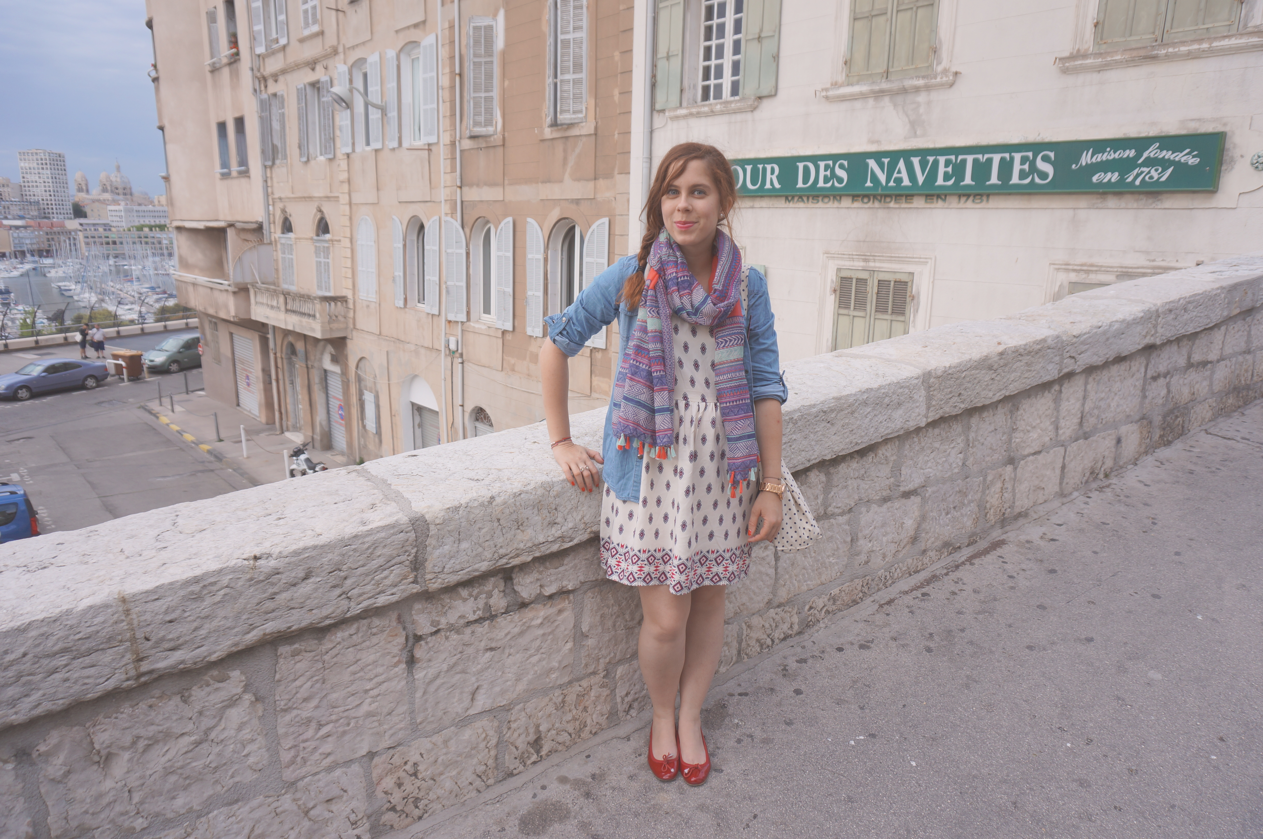 Ahhhh j’adore cette adresse c’est vraiment les meilleures navettes que j’ai mangé ça vaut le détour! Sinon moi qui suit accro aux foulards je trouve celui ci très sympa et en association avec la chemise en jean encore plus! Merci encore pour tes jolies photos de Marseille c’est toujours un bon moment de les voir et de te lire…