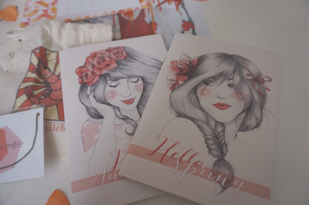 ♥ Deux pochettes en coton à glisser dans son sac ou à utiliser comme moyen de ranger ses bijoux, illustrées par Anne Desrivières. J’utilise pas mal ce type de pochettes pour ranger mon appareil photo ou des babioles comme mes crèmes pour les mains ou les baumes à lèvres dans mon sac, donc plus que ravie d’avoir ce genre de produits dans la box !