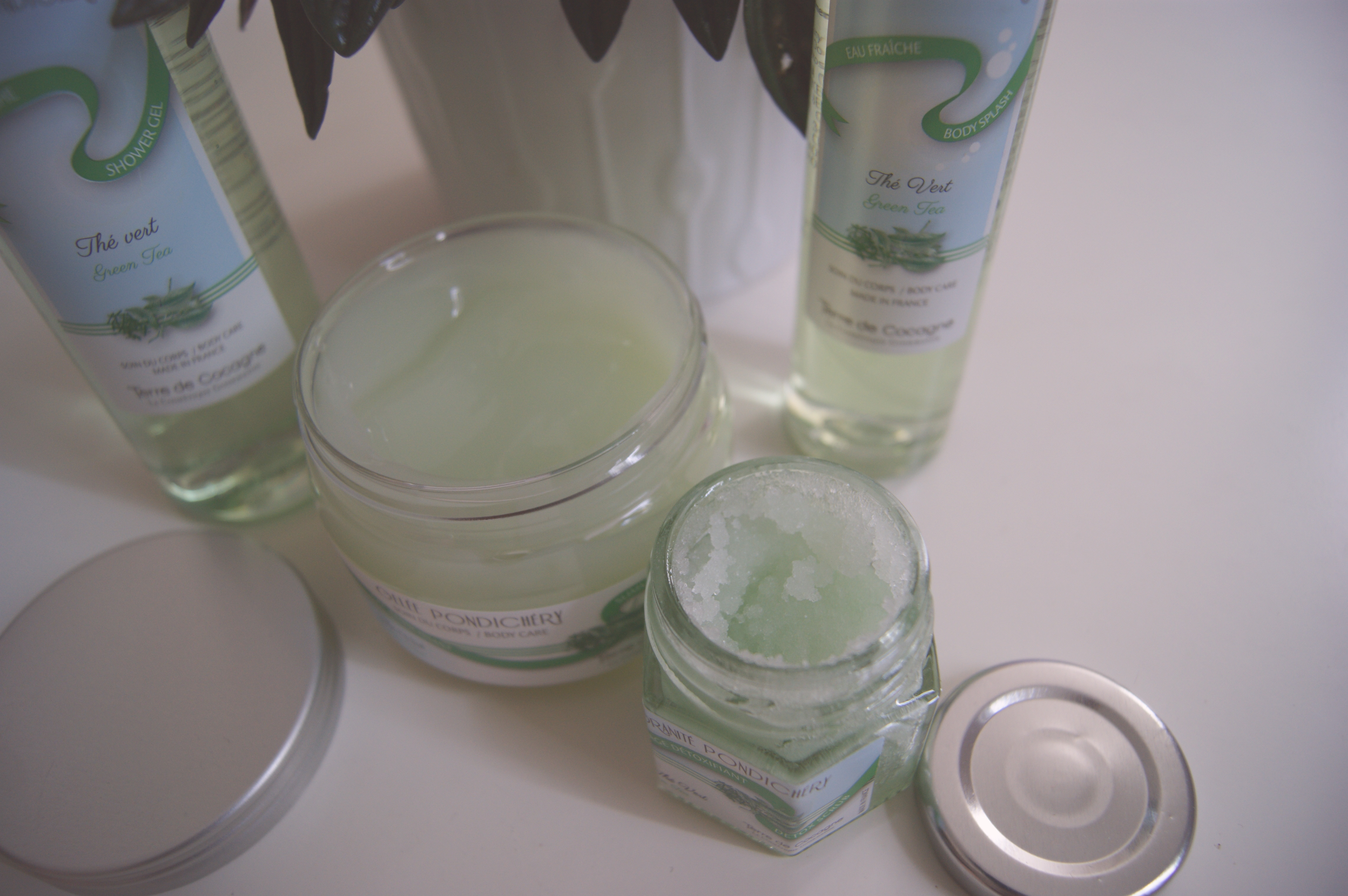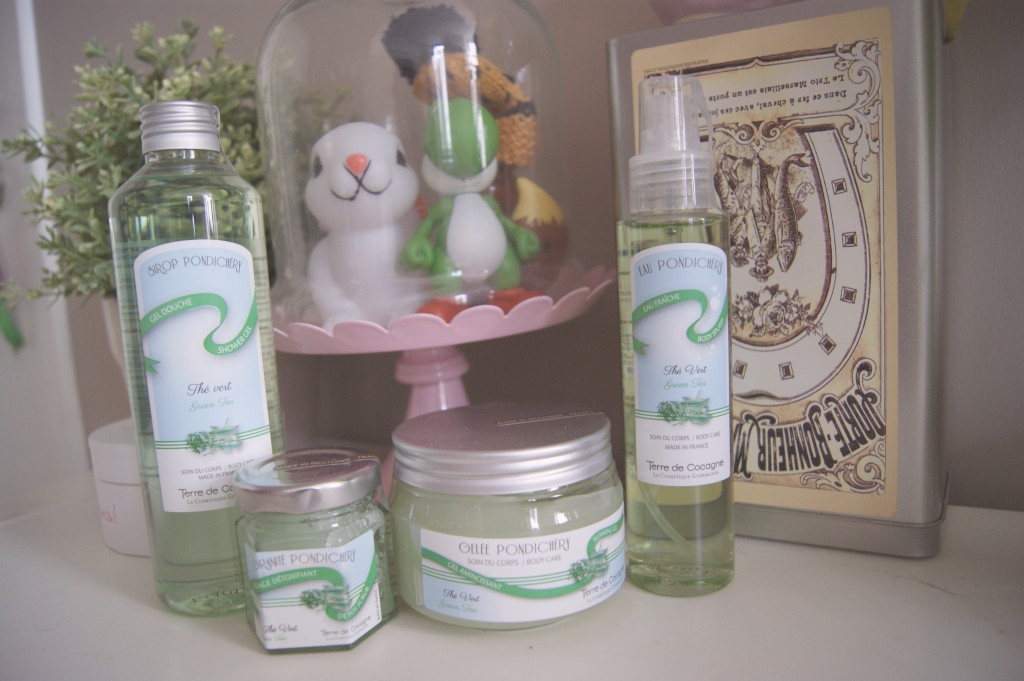 Il y a quelques semaines, j’ai reçu un chouette colis avec leur nouvelle gamme au thé vert, intitulée Pondichéry. Des produits frais, qui sentent bon l’été et qui, pour certains, ont des vertus amincissantes. Parfait pour les beaux jours ;)