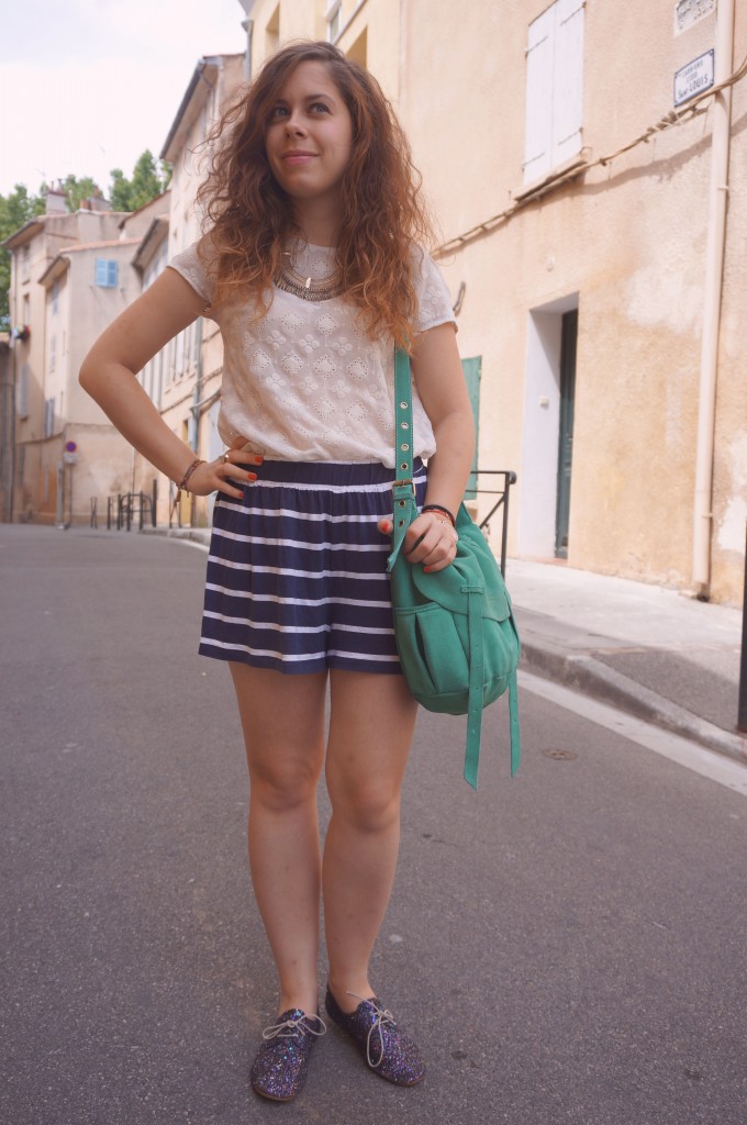 Avec le mistral qui souffle en ce moment à Marseille, impossible de mettre mes jupes et mes robes… Résultat, je me rabats sur mes jeans, mes shorts et mes jupes-culottes. C’est comme ça que j’ai ressorti ma jupe-culotte Asos dénichée l’année dernière ! Une coupe large, des rayures, un tissu léger… Bref, une pièce idéale pour l’été ! :)