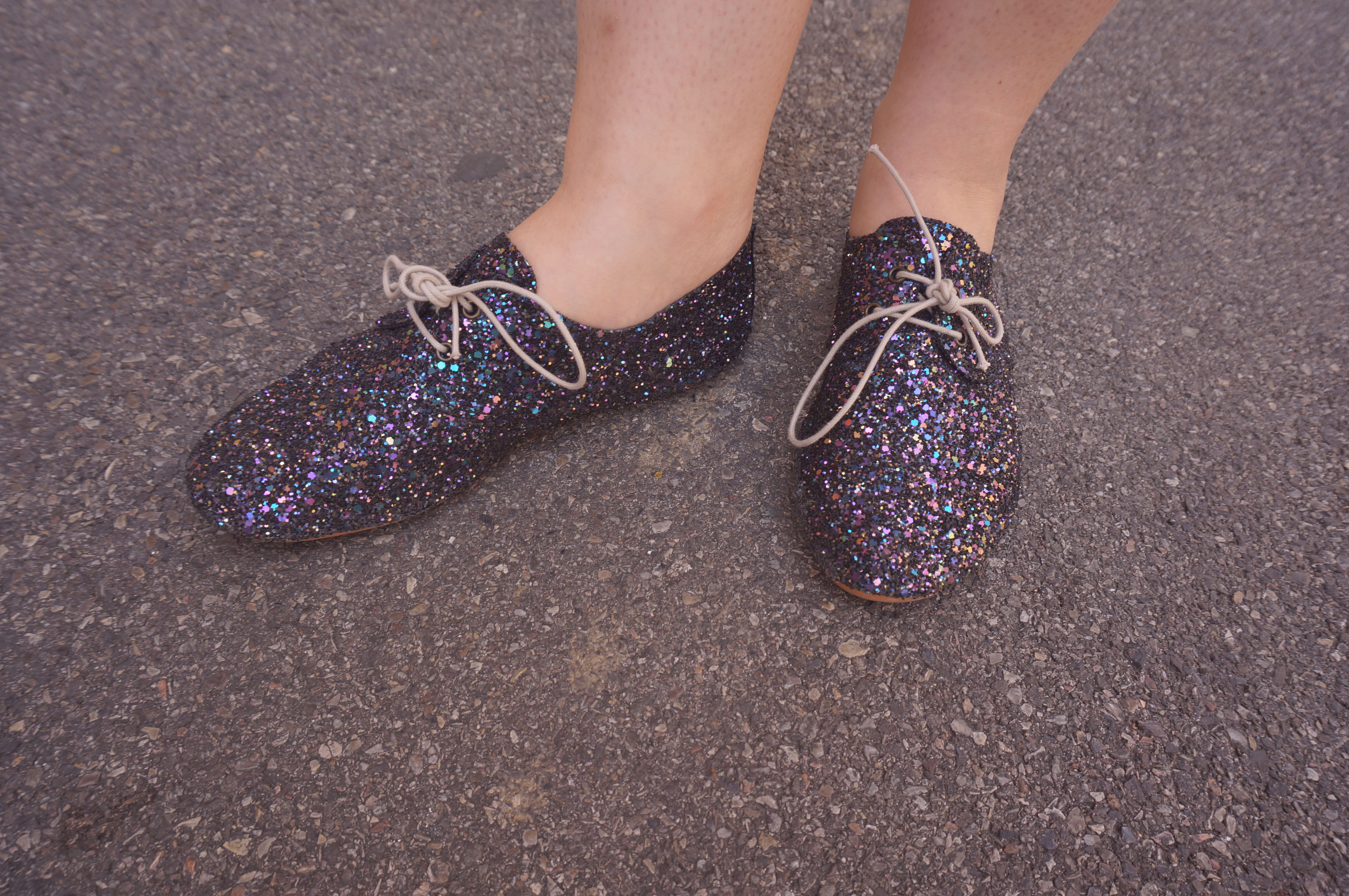 Histoire de twister la tenue, mais de ne pas faire un mix d’imprimé, j’ai opté pour ma blouse Zara que vous avez déjà vue 40 fois sur le blog, ainsi que mes derbies Anniel à paillettes. Ma crinière au naturel et me voilà en mode été, casual, sur le blog !