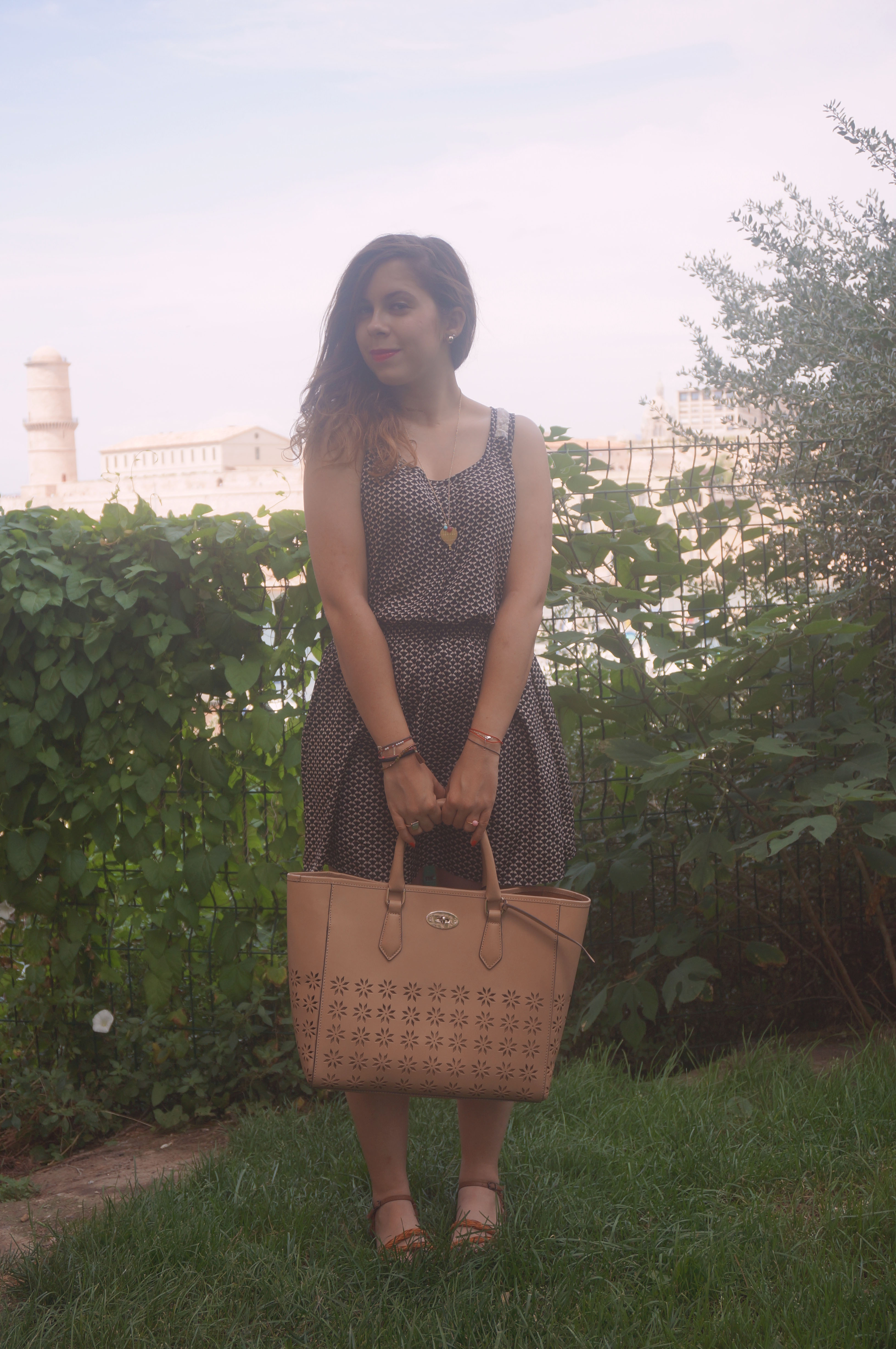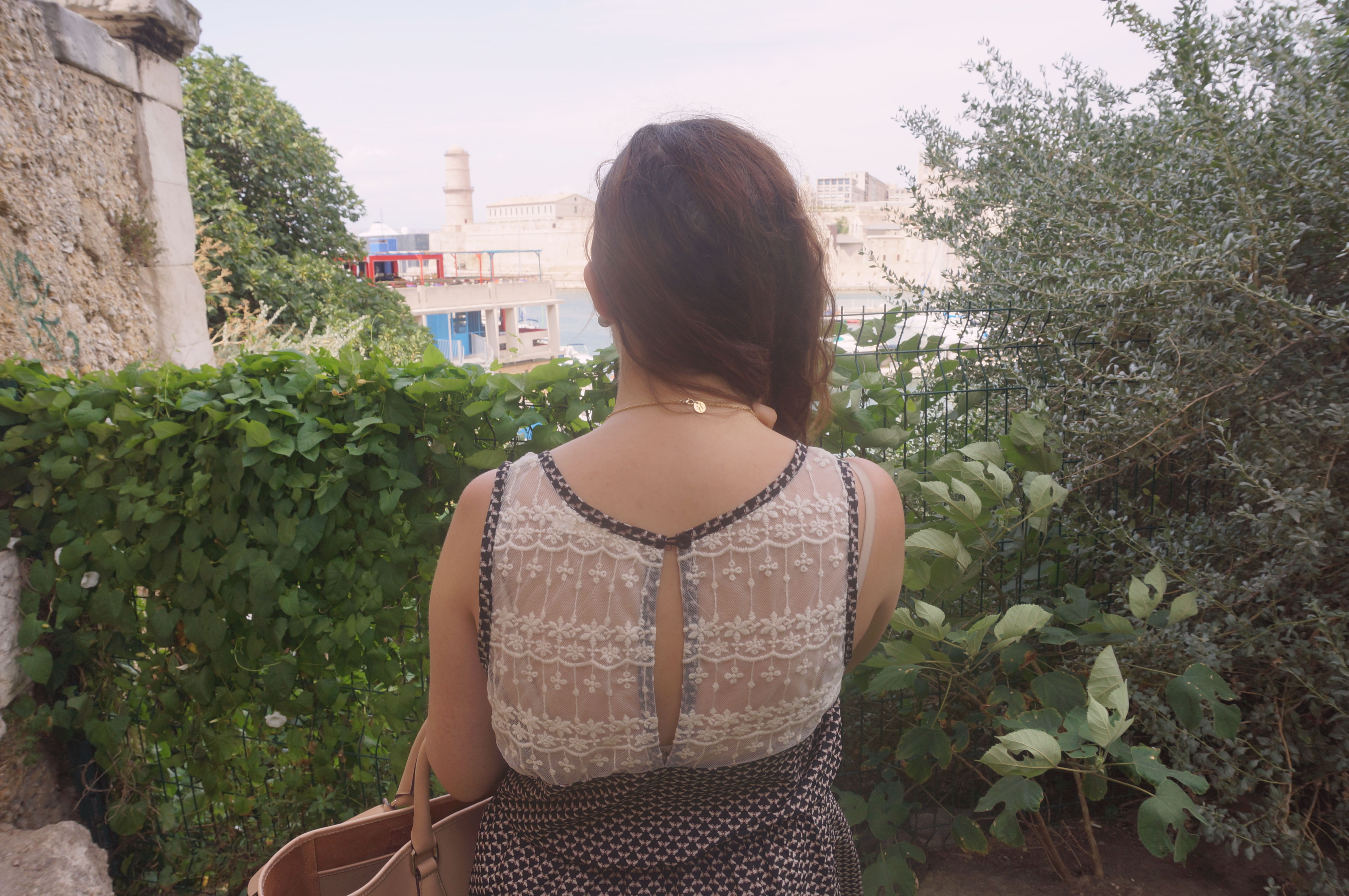 On dirait que l’été a décidé de se faire la malle, même ici à Marseille où le mistral souffle à faire voler les feuilles des arbres comme au mois de Novembre, où les jupes s’envolent et où rester digne en robe s’avère être sportif. Mais bon, pour être honnête, à force de porter mes jeans, je commençais à en avoir ras-le-bol de ne pas pouvoir sortir mes robes de mon dressing alors, j’ai pris le risque, j’ai mis une robe un jour de mistral :D