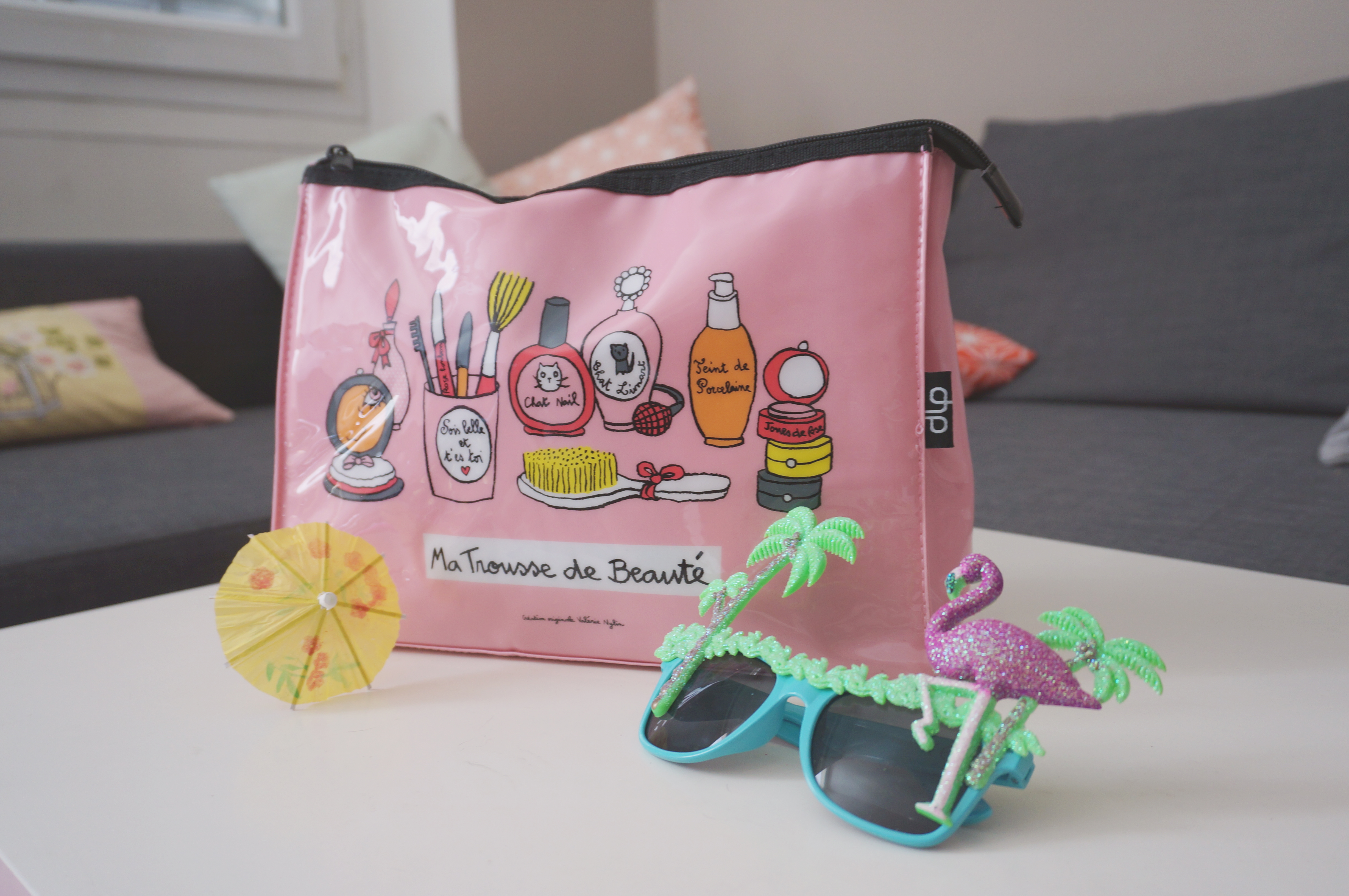Quand je pars en vacances, j’aime pouvoir partir avec mes produits chouchous, ceux que j’utilise régulièrement tout au long de l’année, et tester aussi des nouveautés en format voyage. Pour moi, le bon mix c’est de mixer produits en petit format et produits en taille full-size, dans une trousse de toilette pratique. On glisse le tout dans la valise, on prend Guignette sous le bras et hop, en vacances !