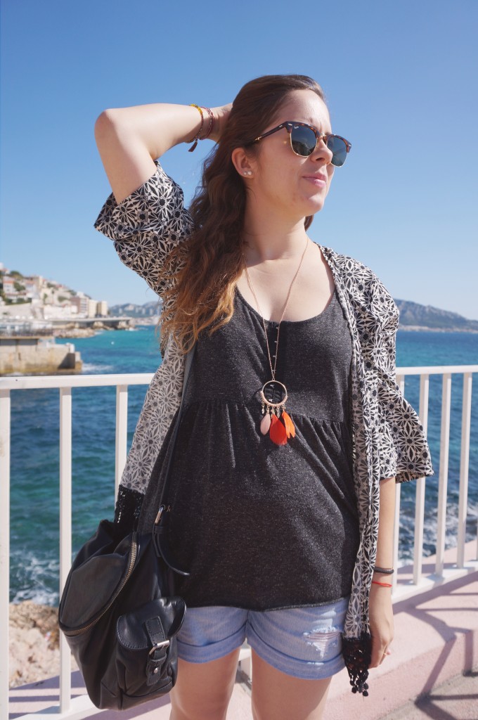 Je trouve la combinaison du kimono avec le short et le débardeur superbe!