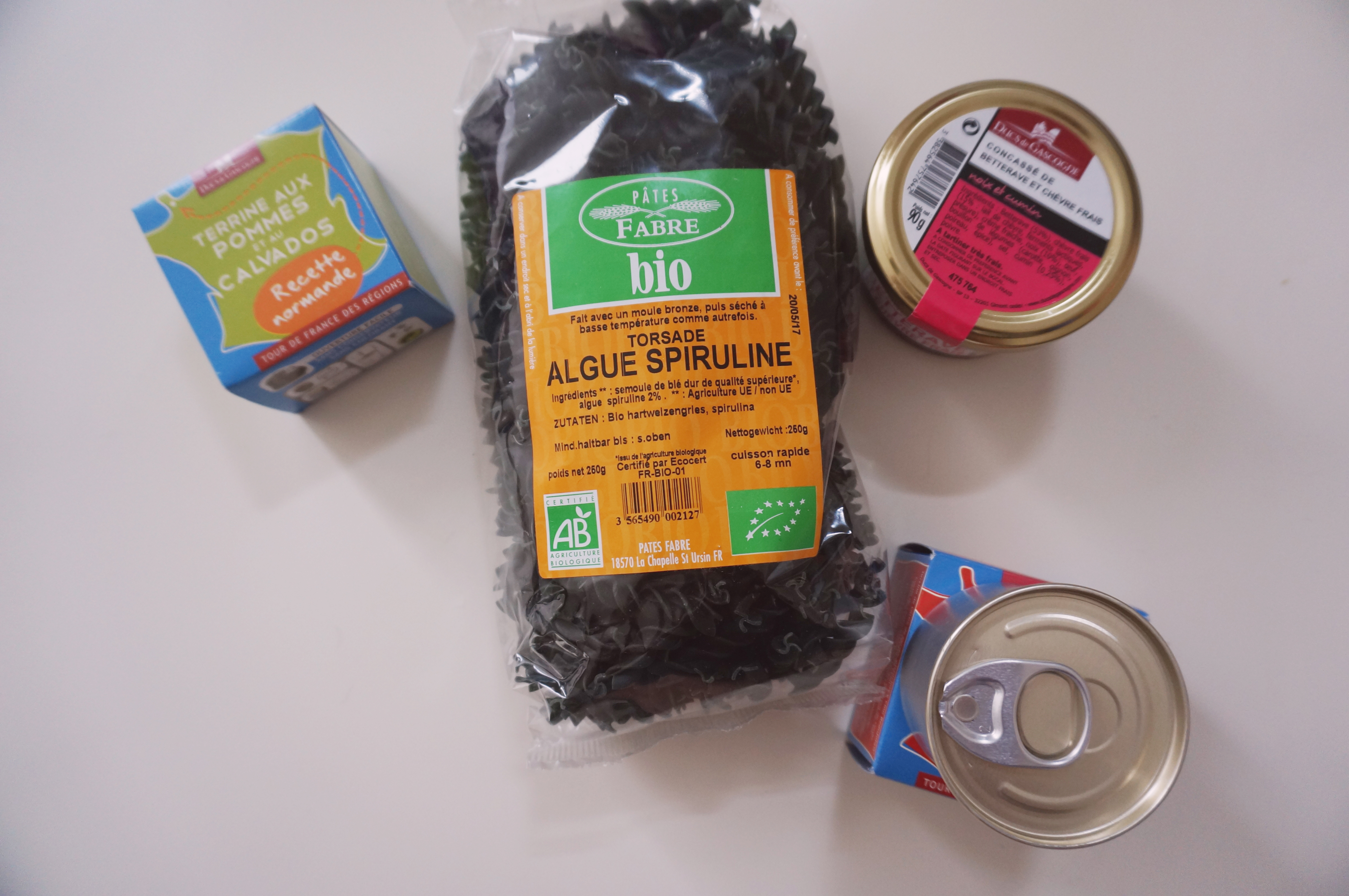 Des torsades bio à la spiruline de la marque Fabre. La spiruline, c’est une algue enrichie en vitamines, protéines et calcium. Je connaissais juste de nom, j’ai hâte de me faire un bon plat de pâtes avec ^^