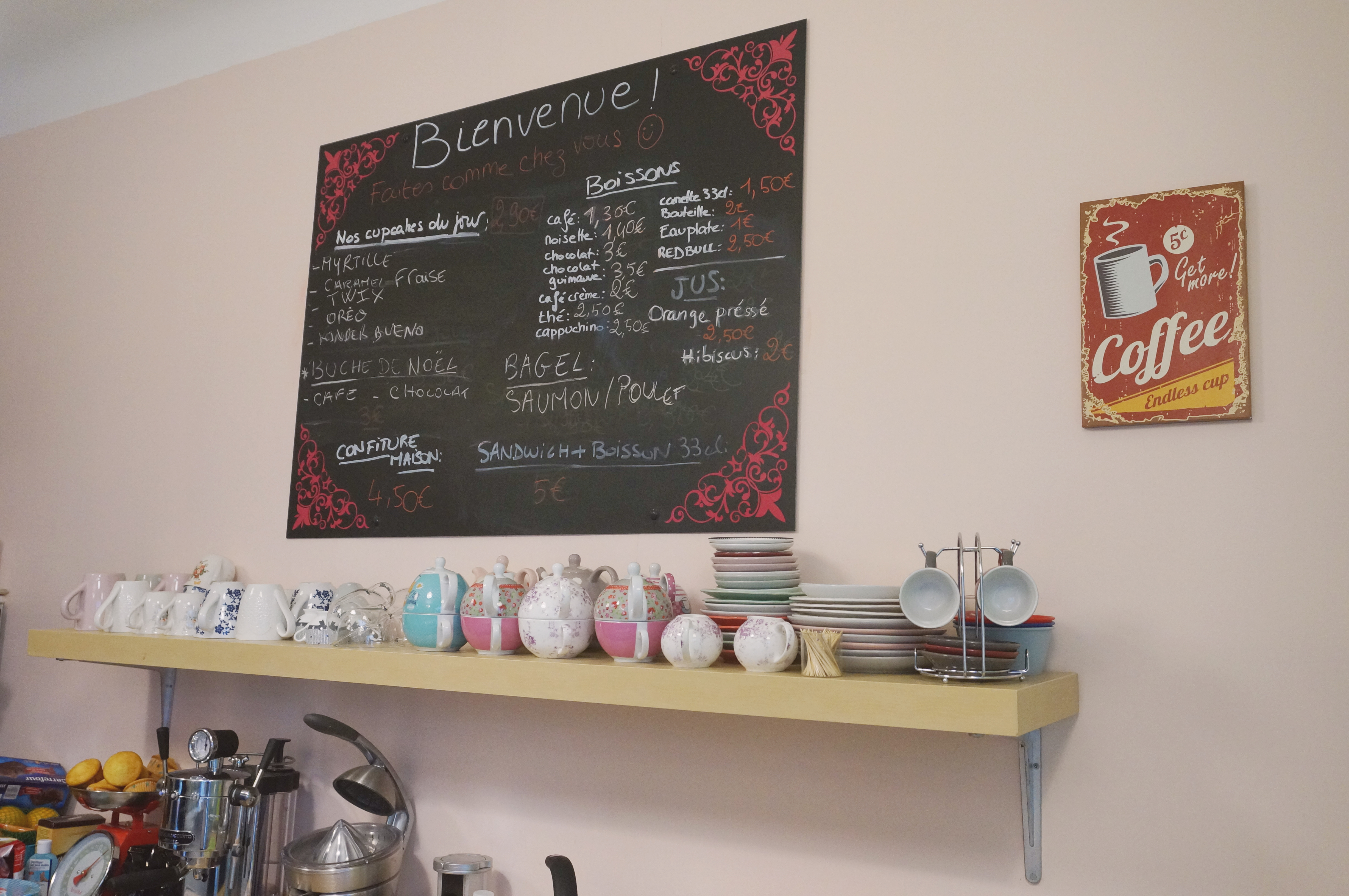 Mais chez Mademoiselle Cupcake, on peut aussi s’arrêter le midi manger un bagel (avec le pain fait maison !) ou prendre le temps de bouquiner l’un des livres mis à disposition. On peut y emmener aussi les copines pour un tea time girly et faire les gourmandes. Mais avant tout, on se sent comme chez soi, et ça, c’est chouette !