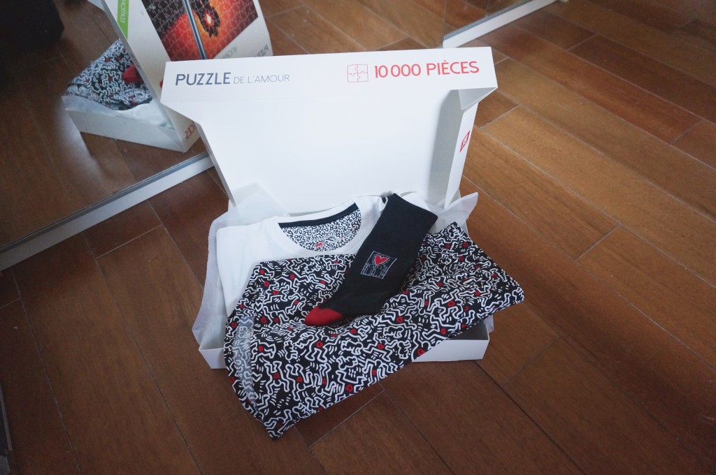 Forcément, en découvrant l’intérieur du paquet, notre surprise sera la plus chouette ! Dans la mienne se cache un ensemble Keith Haring, comprenant un tee-shirt, un caleçon et des chaussettes, mais vous pouvez tout à fait glisser une chemise, un tee-shirt, un pantalon, un accessoire… Libre à vous de choisir ce que vous souhaitez offrir à votre amoureux, en choisissant aussi l’emballage cadeau qui lui fera la plus grosse frayeur !