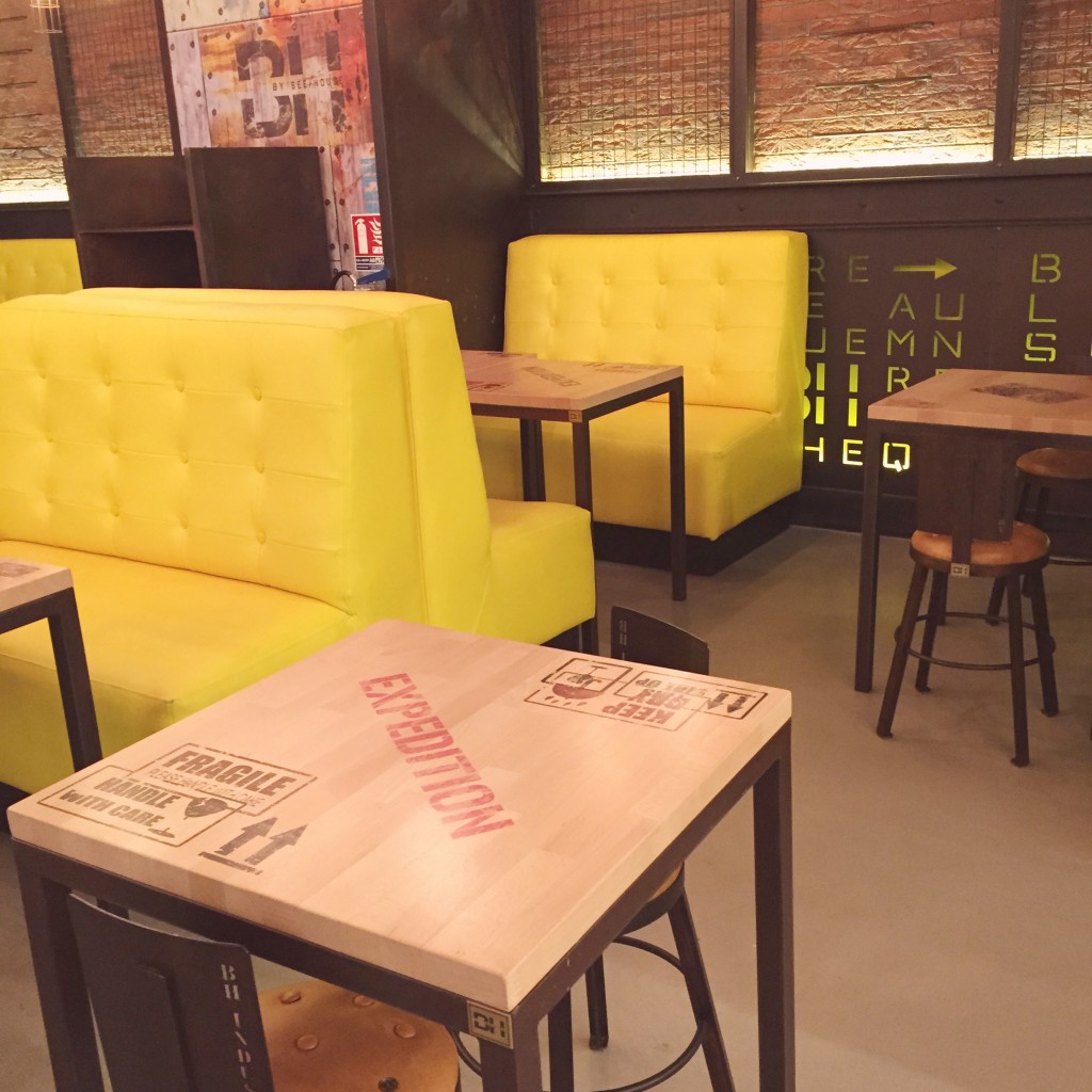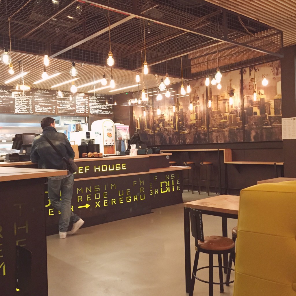 En effet, depuis quelques jours, dans la Halle Alimentaire située au rez-de-chaussée des Terrasses du Port, a ouvert BH By Beef House. Une sorte de fast-food un peu plus haut-de-gamme que McDo, le prix raisonnable en plus. BH by BeefHouse, c’est en fait le petit frère de Beef House, le restaurant de viandes qui se situe au 2ème étage des Terrasses du Port. Et dont je ne suis pas vraiment fan, pour être honnête. Trop bruyant, on doit faire la queue pour avoir une place et en plus les accompagnements sont en suppléments.