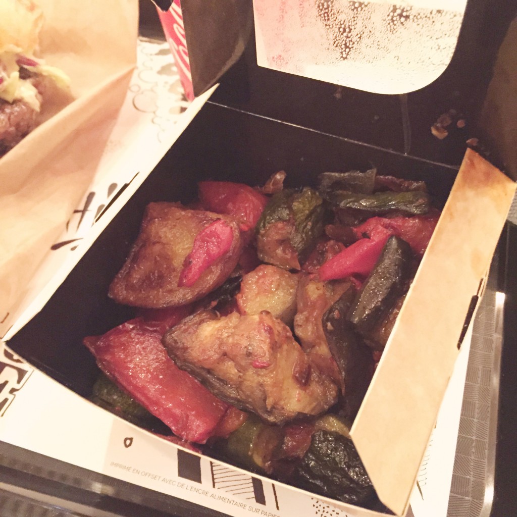 J’ai pris un burger béarnais et Laurent le cheese. Niveau burger, ils sont consistants et garnis généreusement ! Le pain est très bon, légèrement fariné comme je l’aime. Le steak était peut être un peu trop saignant, cela ne me dérange pas mais c’est à noter pour les personnes qui préfèrent leur viande bien cuite ;) Le burger est tellement consistant que je n’ai pas réussi à le finir, malgré ma faim de loup ! Côté accompagnement, on a pris des frites (classiques mais assez bonnes et pas salées, chic !) et des légumes sautés.