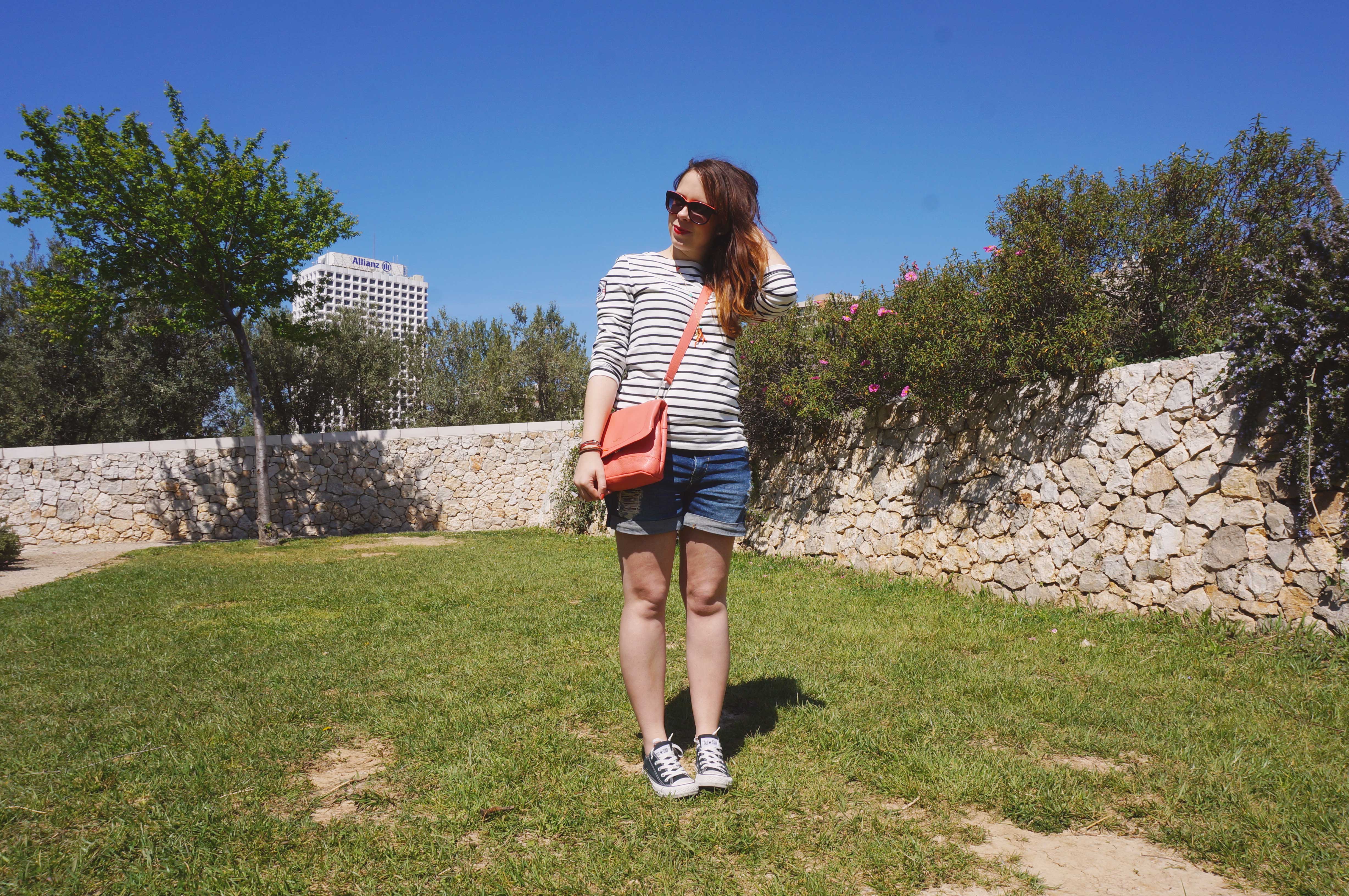Terre de Marins, c’est une marque que je connais depuis des années. Je la voyais régulièrement dans des magasins sur la côte Atlantique, quand je vivais encore à La Rochelle. Et puis, je suis arrivée à Marseille, j’ai continué à porter des marinières, dénichées ici ou la, et j’ai un peu zappée la marque. Et il y a quelques semaines, ils m’ont contacté en me proposant de m’envoyer une marinière pour combler mon addiction ;) Alors j’ai craqué pour un modèle un peu rock, comme la marque aime la définir, avec ses écussons brodés. Elle est en coton épais, ce qui est plutôt sympa pour la saison car je peux la porter sans veste et sans avoir froid. Pour aller avec, cette fois-ci, j’ai fait simple : un short en jean, des Converse, un ou deux bijoux et voila ! Il faut dire que le jour où on a shooté ce look, j’étais un peu patraque et j’avais plutôt la flemme de m’habiller, donc dans ces cas là je fais simple mais efficace ;)