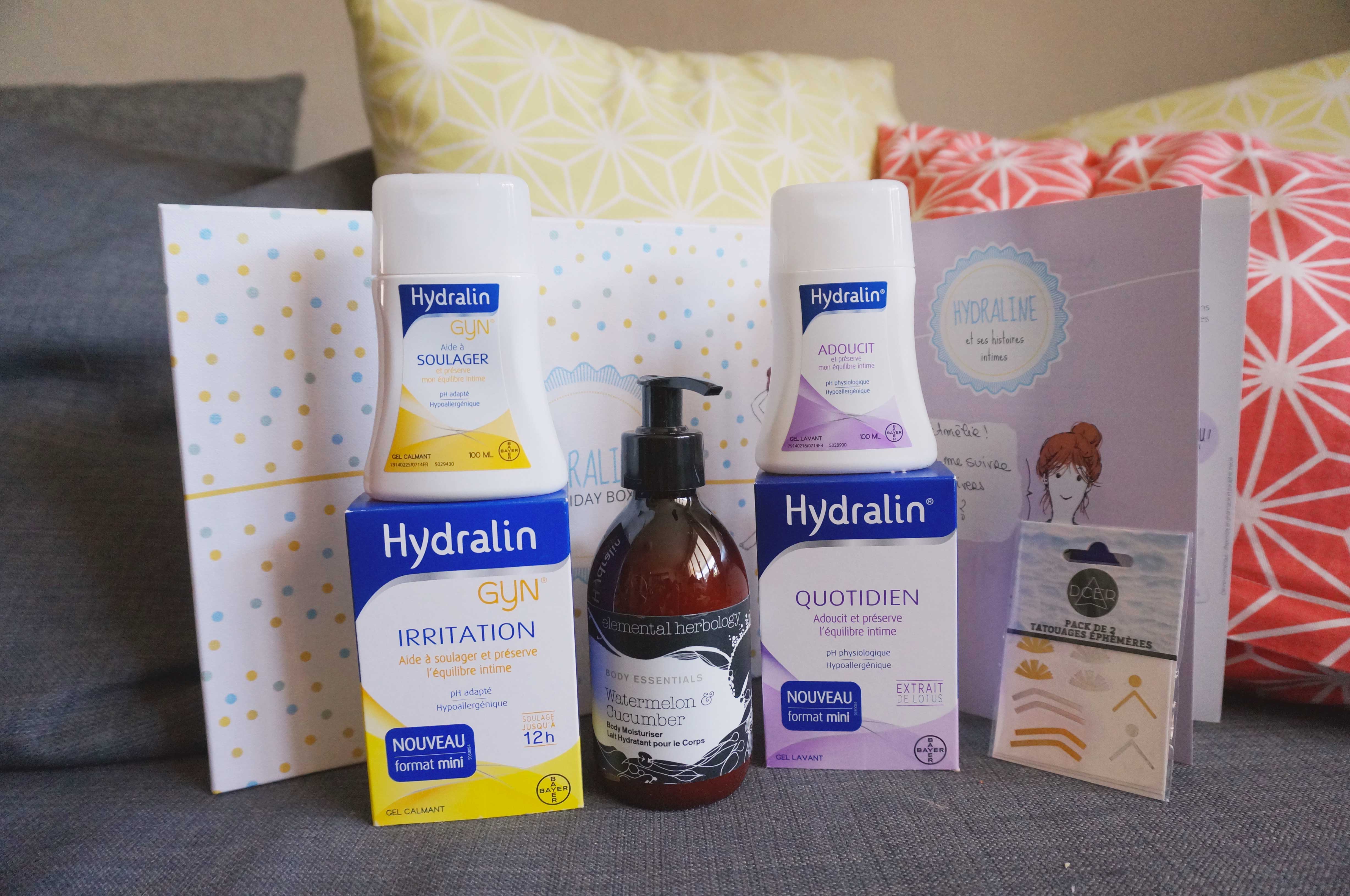 J’ai donc reçu dans ma boite aux lettres il y a quelques jours l’Hydraline Holiday Box, une box parfaite pour les vacances, et qui permet de sensibiliser les jeunes femmes à l’hygiène intime tout en proposant une box girly à souhait ! A l’intérieur, on y retrouve :