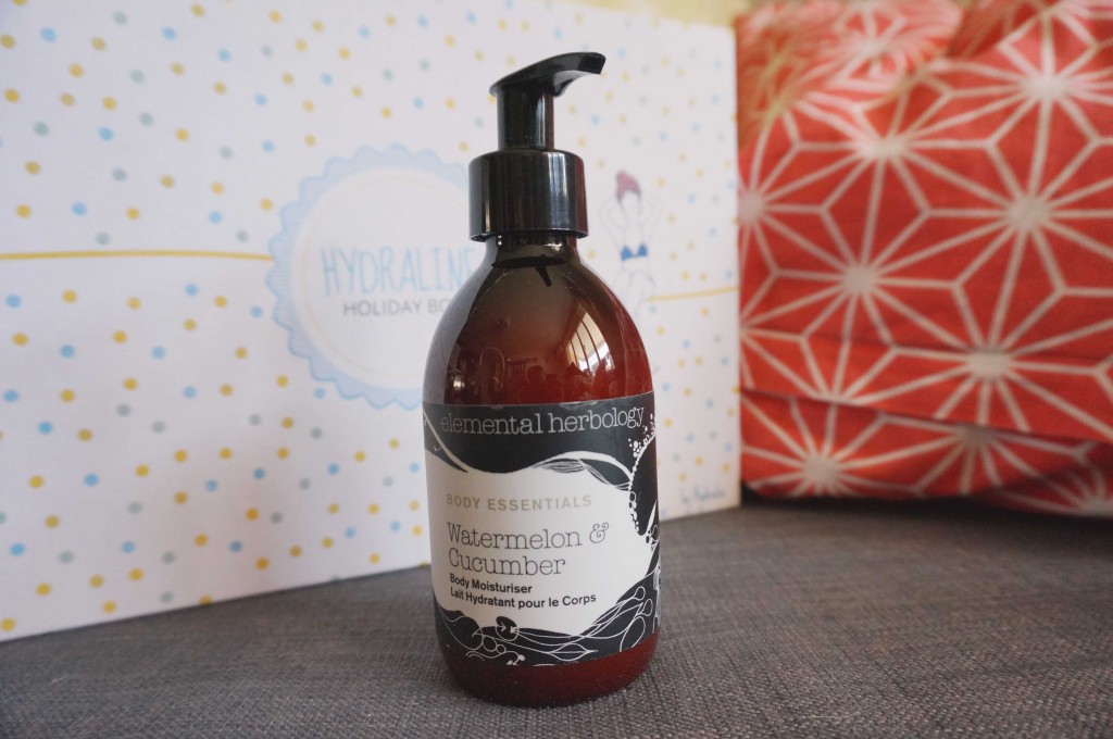 ♥ Un lait pour le corps à la pastèque et au concombre de la marque Elemental Herbology (qui sent super bon mais je ne peux pas l’utiliser pour le moment, snif !)