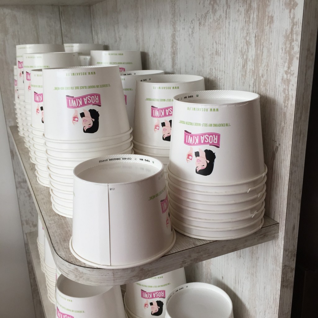 Rosa Kiwi, c’est tout un concept ! En fait, c’est un self-service de yaourts glacés. On arrive dans la boutique, on prend un pot vide et on le remplit avec l’une des 6 saveurs de yaourts glacés disponible dans les machines. On peut aussi faire les gourmands et mélanger les parfums, comme moi ! ;)