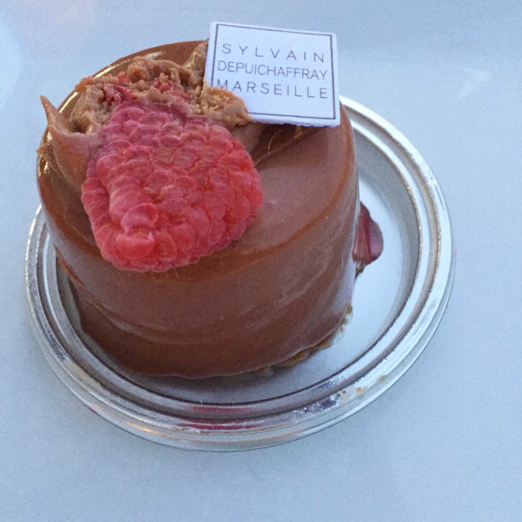 En dessert, nous n’avons pas pu goûter le dessert compris dans le menu Maille, un duo de pêche de vigne sur un caviar de balsamique Maille. Du coup, c’est sur des pâtisseries de Sylvain Depuichaffray, mon pâtissier marseillais préféré, que nous avons jeté notre dévolu pour terminer ce repas sur une note de douceur ! :)