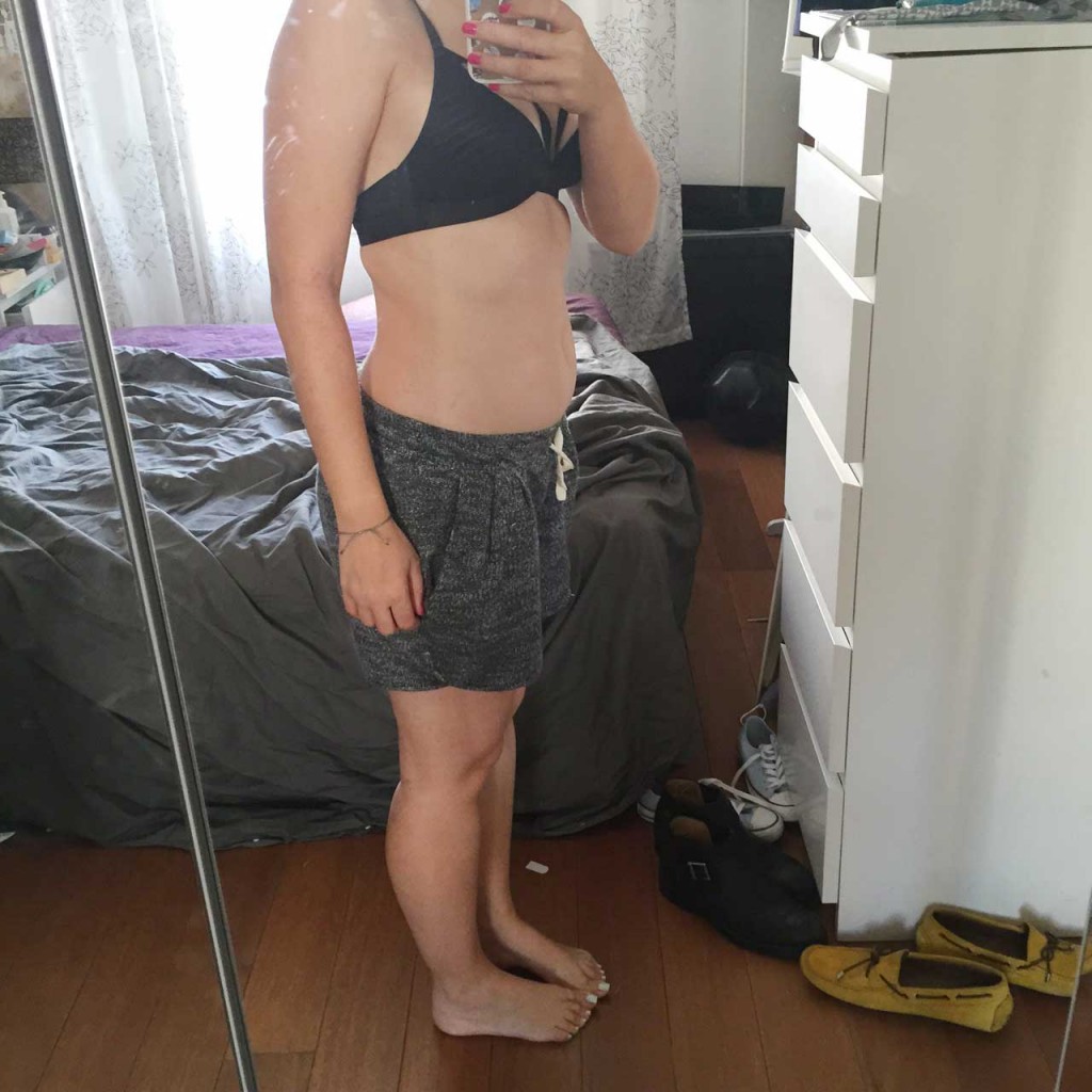 Du côté de ma silhouette, j’ai perdu 1kg. Ce n’est pas foufou, surtout que c’est uniquement de l’eau. Mais je me suis sentie plus légère, mon ventre était un peu moins gonflé et après les repas, j’ai eu tendance à moins prendre dans le ventre. J’ai essayé de vous faire un avant-après, vous allez voir que la différence n’est pas physiquement flagrante, mais en tout cas à l’intérieur, c’était bien mieux ! ^^