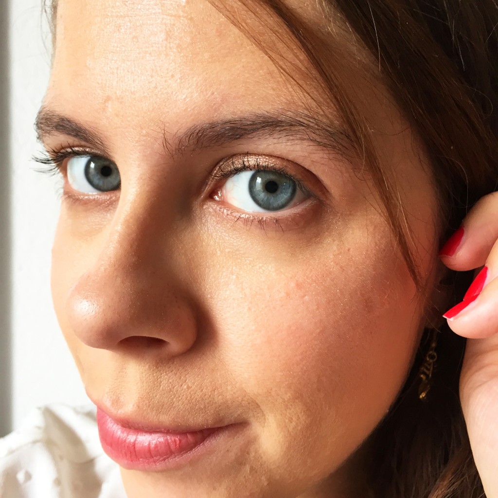 Une fois le fond de teint appliqué, on donne de l’éclat à notre teint au niveau des joues, en travaillant avec son blush habituel et en ajoutant une touche “glitter” grâce au Watt’s Up de Benefit. Cet enlumineur nacré, couleur champagne est facile à appliquer : on pose l’enlumineur sur les pommettes puis on utilise l’applicateur pour un effet flou, super naturel. Véritable touche d’éclat, on peut utiliser ce produit également sur l’arcade sourcilière ! ;)