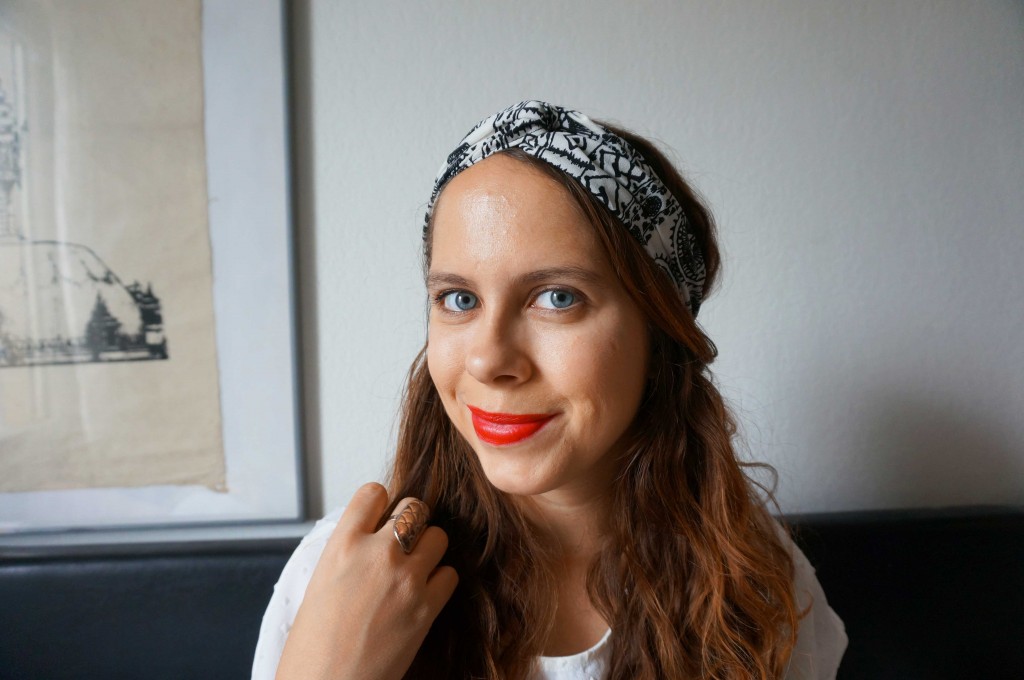 Super look, le headband et le rouge à lèvres rouge sont très beaux et te vont à merveille ;)