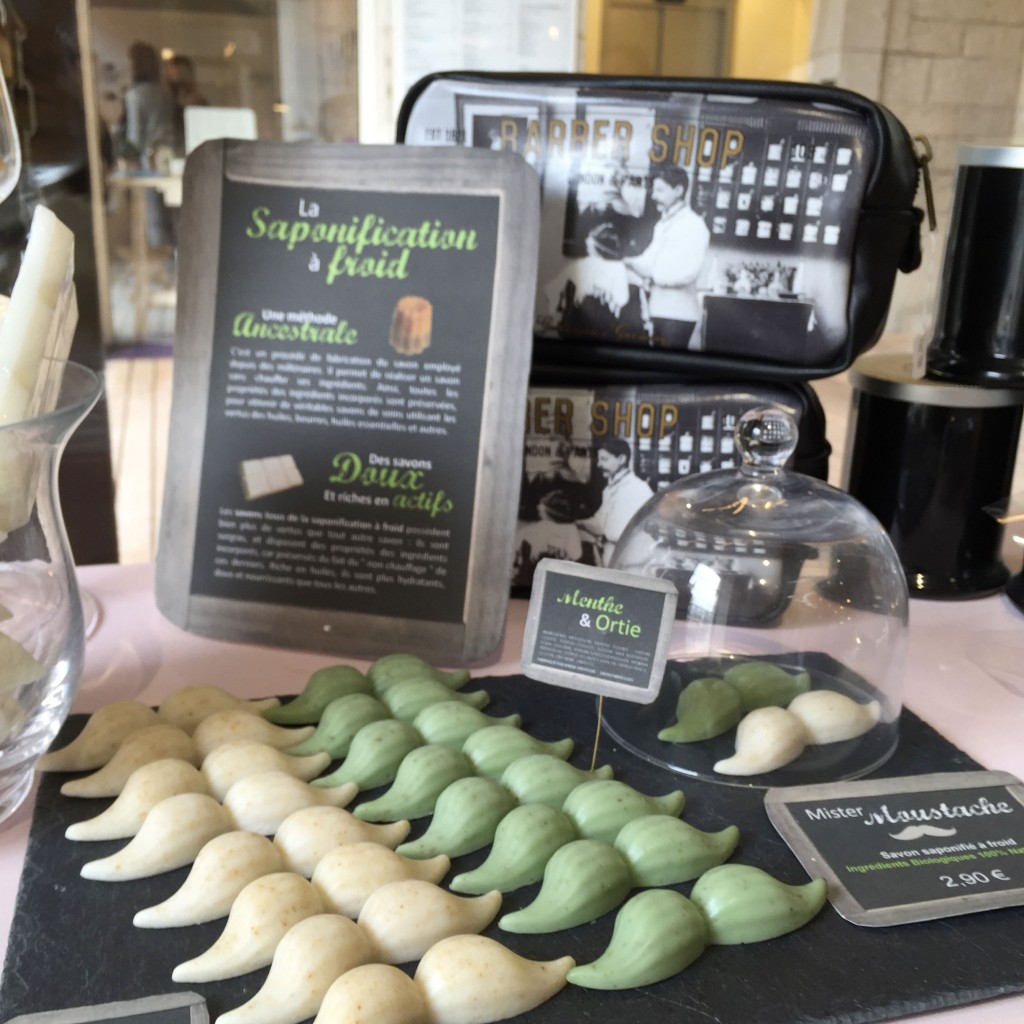 Pour nos hommes et celles qui comme moi privilégient les cosmétiques bio dès que possible, un corner leur est dédié dans le magasin. On y retrouve des mini cupcakes crées par une ancienne pâtissière (et ça se voit au souci du détail, notamment pour le « glaçage » !), des savons en forme de moustaches, une mousse à raser bio formulée à base d’huile de ricin… Bref, les équipes de Bain de Gourmandises ont pensé à tout le monde !