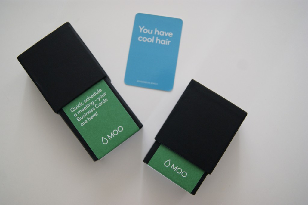 - Un SAV au top ! J’ai déjà eu le souci de commandes qui se perdent (merci La Poste…) et MOO m’a vite renvoyé un pack de cartes, sans frais supplémentaires. Si l’on a un souci, ils sont assez réactifs par email. Petit bémol : même si le site est en français, MOO est une marque britannique et du coup, il faut parfois parler anglais.