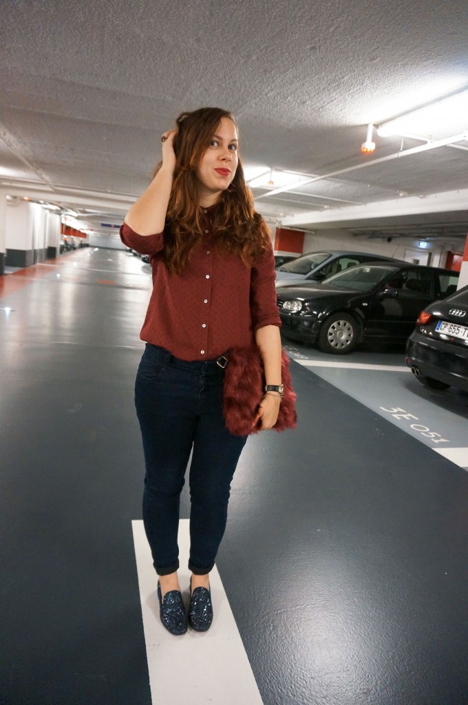 Du coup, j’ai sorti ma chemise Pull&Bear qui va être souvent portée cet hiver (jusqu’à ce que mort s’ensuive), mon jean slim taille haute acheté une bouchée de pain chez New Yorker et ma pochette que mon chat kiffe, dénichée aussi pour une bouchée de pain chez Primark.