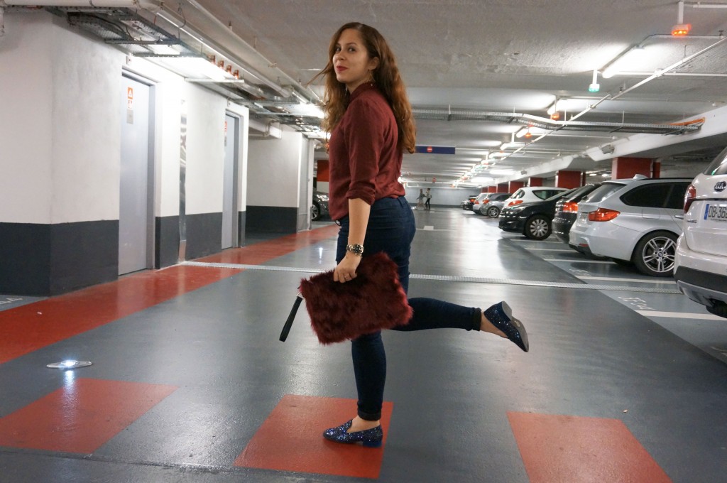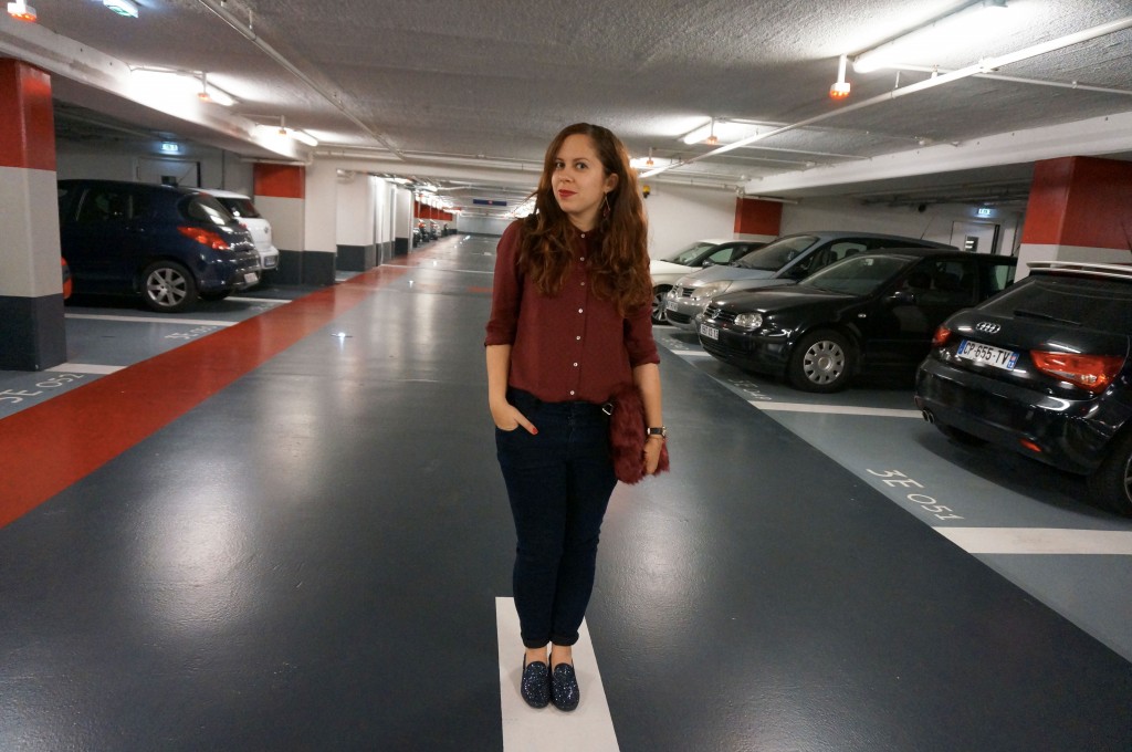 Un look simple mais un peu rock de par ses couleurs, facile à porter pour aller au boulot comme à l’école ou même pour une sortie entre copines ! Comme quoi, on peut être chic en paillettes ! Allez, c’est parti pour les photos du shooting, réalisé dans un parking. Je me la suis même jouée Beatles à un moment haha ;)
