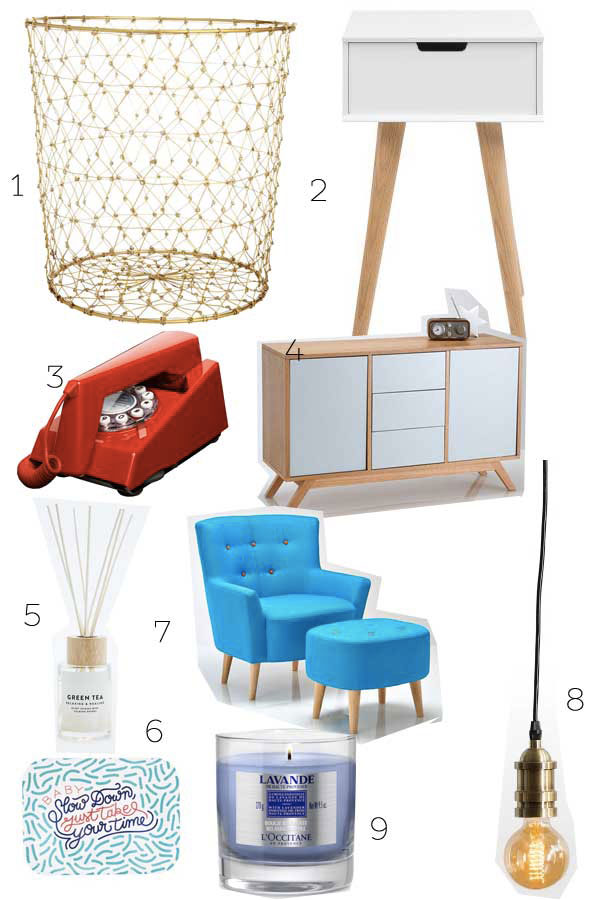 Très jolie sélection! Je m’empêche également de faire des achats déco trop importants car je cherche à déménager mais je craquerais volontiers pour la suspension en laiton, le buffet rétro et le plateau!