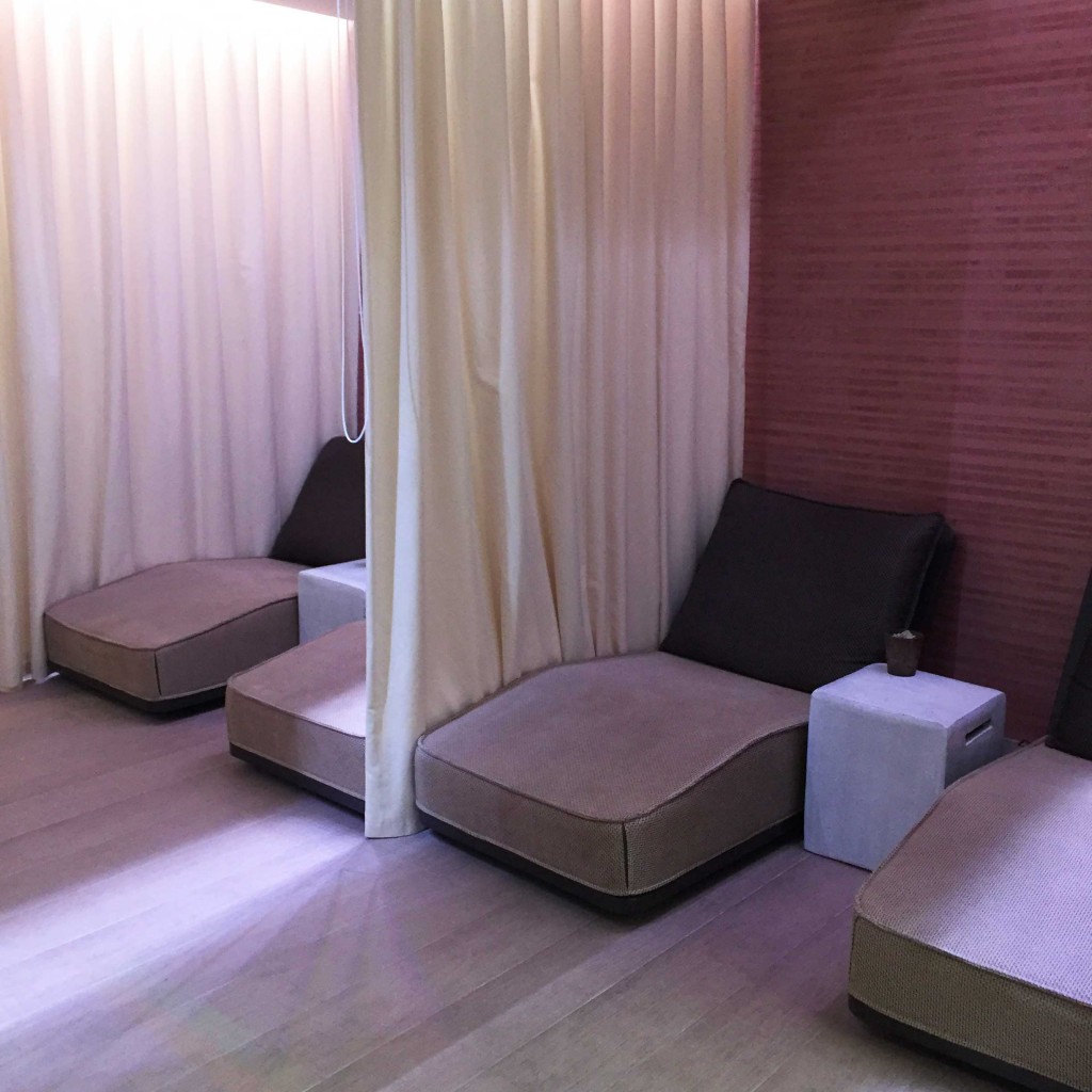 Lundi matin donc, sous un crachin déprimant, je file direction le Spa Clarins Intercontinental Marseille. Comme à chaque fois que je mets les pieds à l’Intercontinental, je ne peux m’empêcher de me sentir un peu gênée, parce que ce lieu est tellement beau et luxueux que je n’en ai pas forcément l’habitude. Je ne suis pas assez mondaine pour ça ^^ Au 1er étage de l’hôtel, j’accède donc au Spa et tout de suite, pfiiiioooooouuuu je me sens déjà un peu apaisée. C’est fou comme les Spa ont le chic pour avoir cet effet décompresseur, même avant qu’on ait commencé le soin !