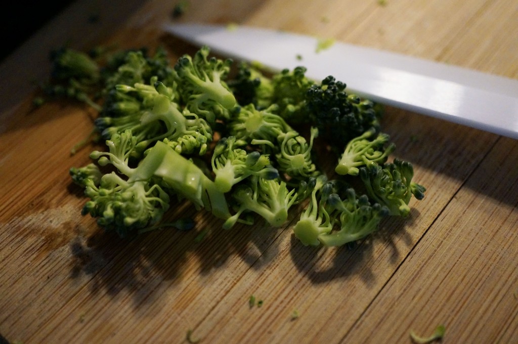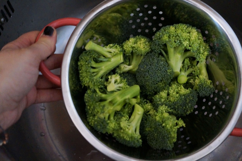 – tu fais cuire le brocolis mais peu, il doit rester un peu croquant