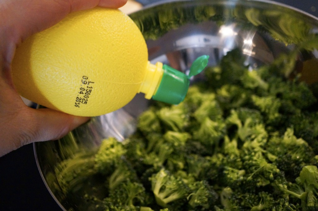 Coupez la tête de brocoli en bouquets et lavez les. Vous pouvez conserver le reste de brocoli si vous le désirez pour en faire une quiche par exemple ;) Une fois les têtes de brocoli égouttées, prélevez les bouquets floraux (les petites graines vertes) avec un couteau en céramique et faites les mariner dans du jus de citron.