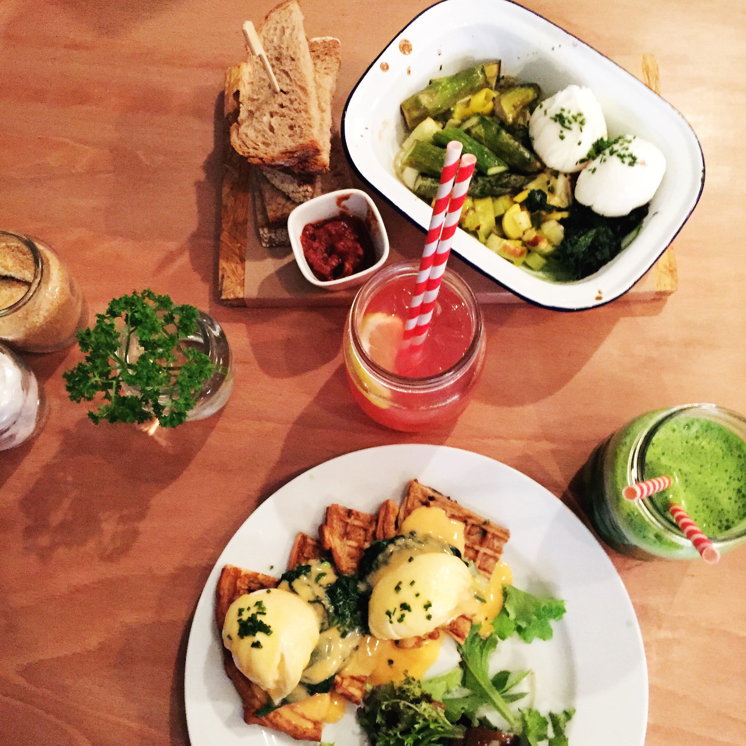 Pour un lunch healthy le dimanche midi, nous sommes allés chez Peck 47. Une adresse que l’on m’avait chaudement recommandée, je dois dire ! Et ce fut une très bonne surprise, malgré l’attente devant les lieux, car c’est tout petit (une dizaine de tables grand max). A l’intérieur, on parle anglais et on mange des plats sains ^^ J’ai pris des gaufres végétariennes aux champignons, oeufs pochés et épinards, avec une grande Mason Jar de Green Juice (épinards, pommes et céleri). Laurent a pris un plat de légumes aux oeufs pochés, avec du pain et une sauce salsa bien piquante ! Pour les petits appétits comme moi, c’est parfait et assez léger ! A deux, on en a eu pour 31€, avec un vrai coup de coeur pour les oeufs et les Mason Jar (et pour la déco ^^).