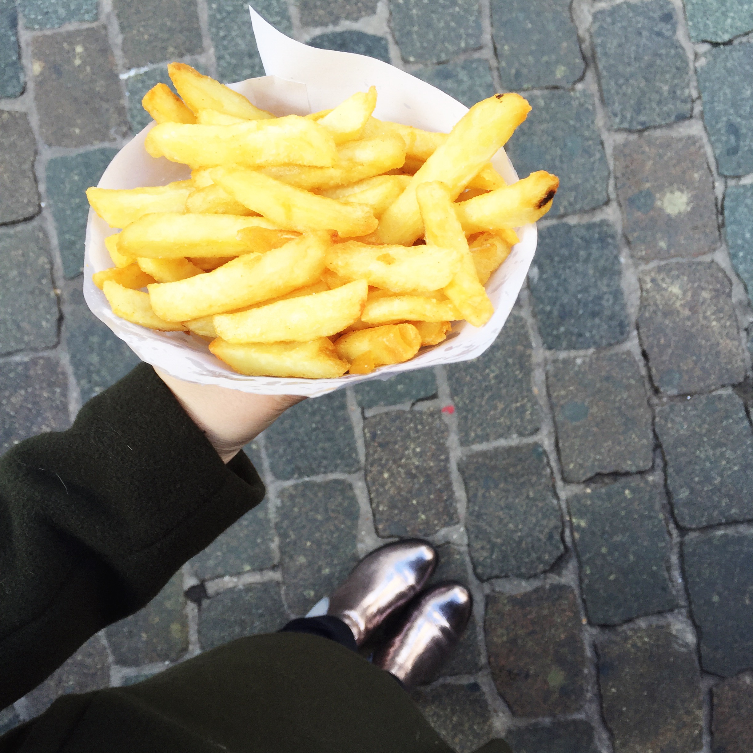 Comme la bière et les gaufres, je ne pouvais pas quitter la Belgique sans manger de frites. Même si elles sont cuites dans la graisse de boeuf. OOPS petite entorse à mon #1moisvegetarien, mais bon on ne va pas à Bruxelles tous les mois. Pour 2.90€, on s’est partagé un gros cornet de frites, avec une sauce béarnaise servie à part. Les frites étaient super bonnes, et comme on avait pas trop faim, j’avoue que ça nous a suffisamment calé pour l’après-midi ^^ Petite astuce parce que ce n’est pas clair du tout : pour passer commande, il faut se présenter à la porte noire sur le côté ;)