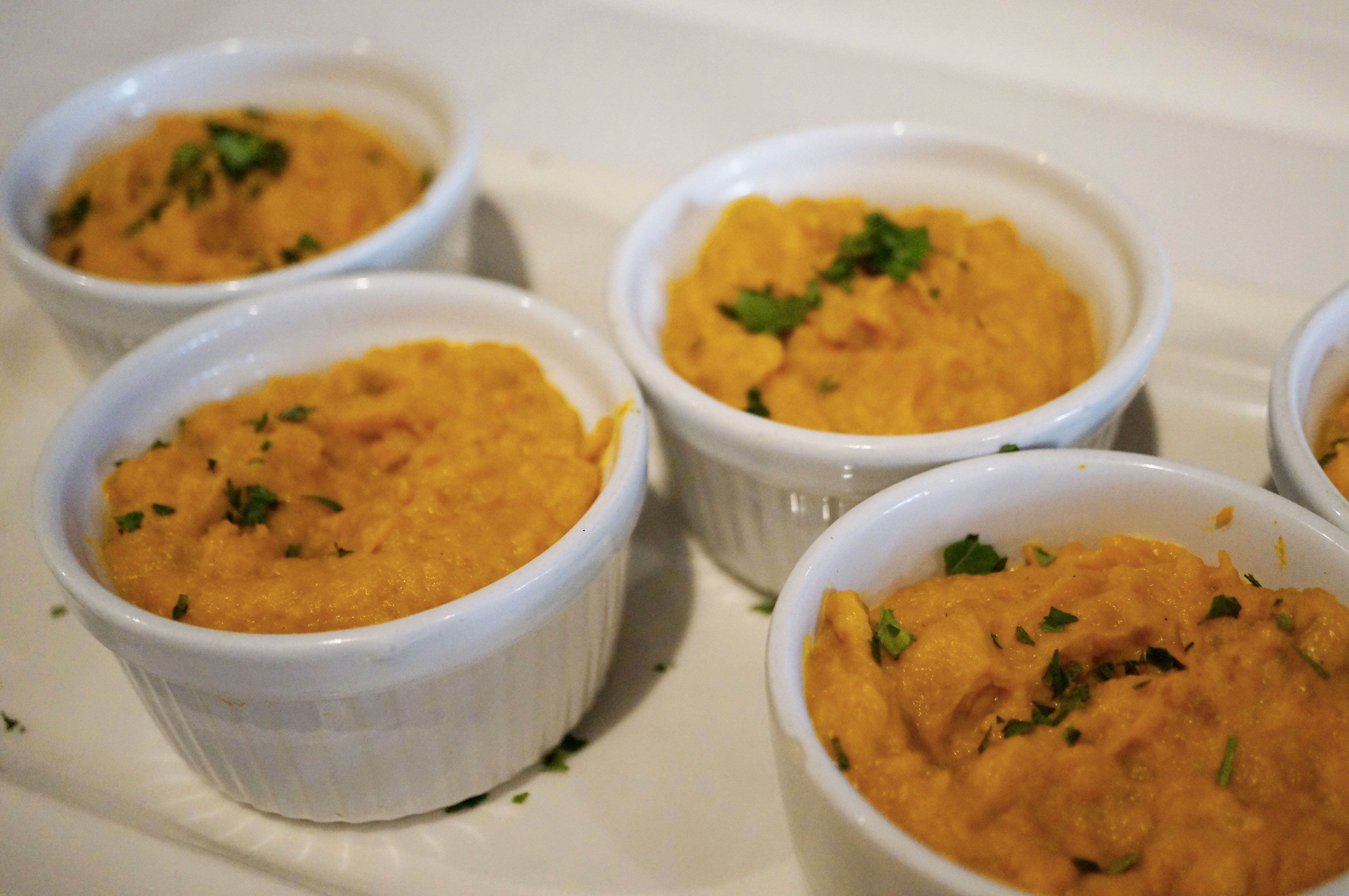 Perso, pour ma part, comme je n’ai pas pu manger de viande, j’ai opté pour les accompagnements, dont une purée de potimarron à tomber !!