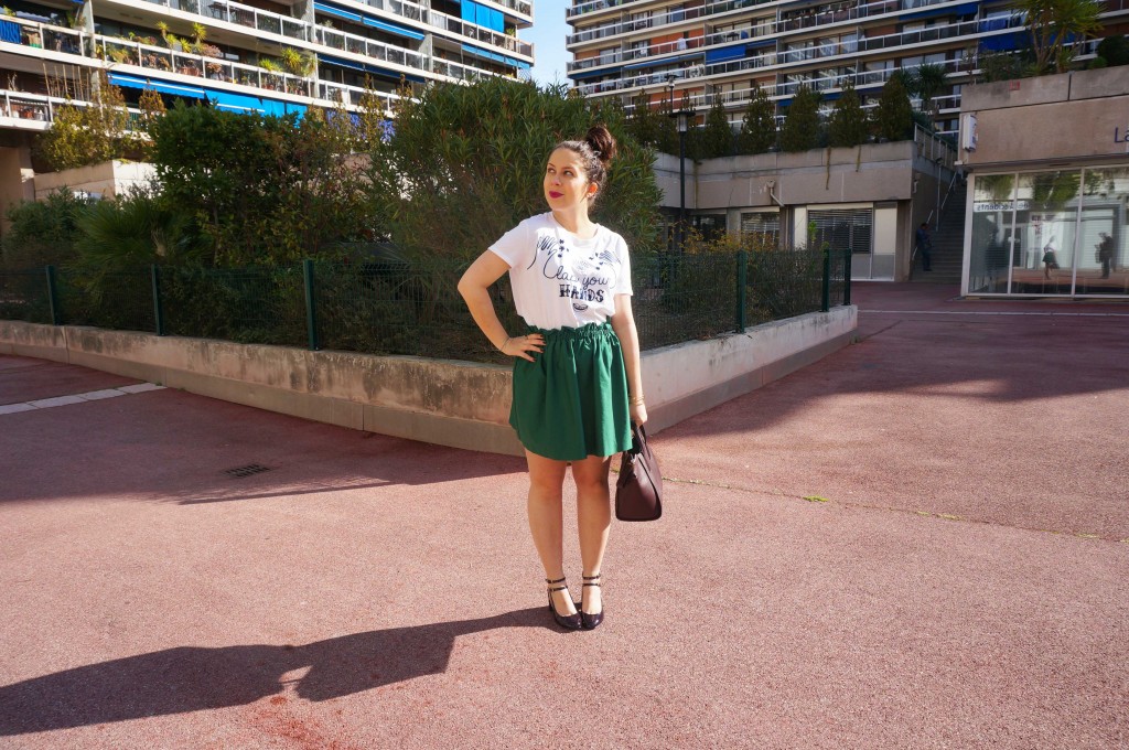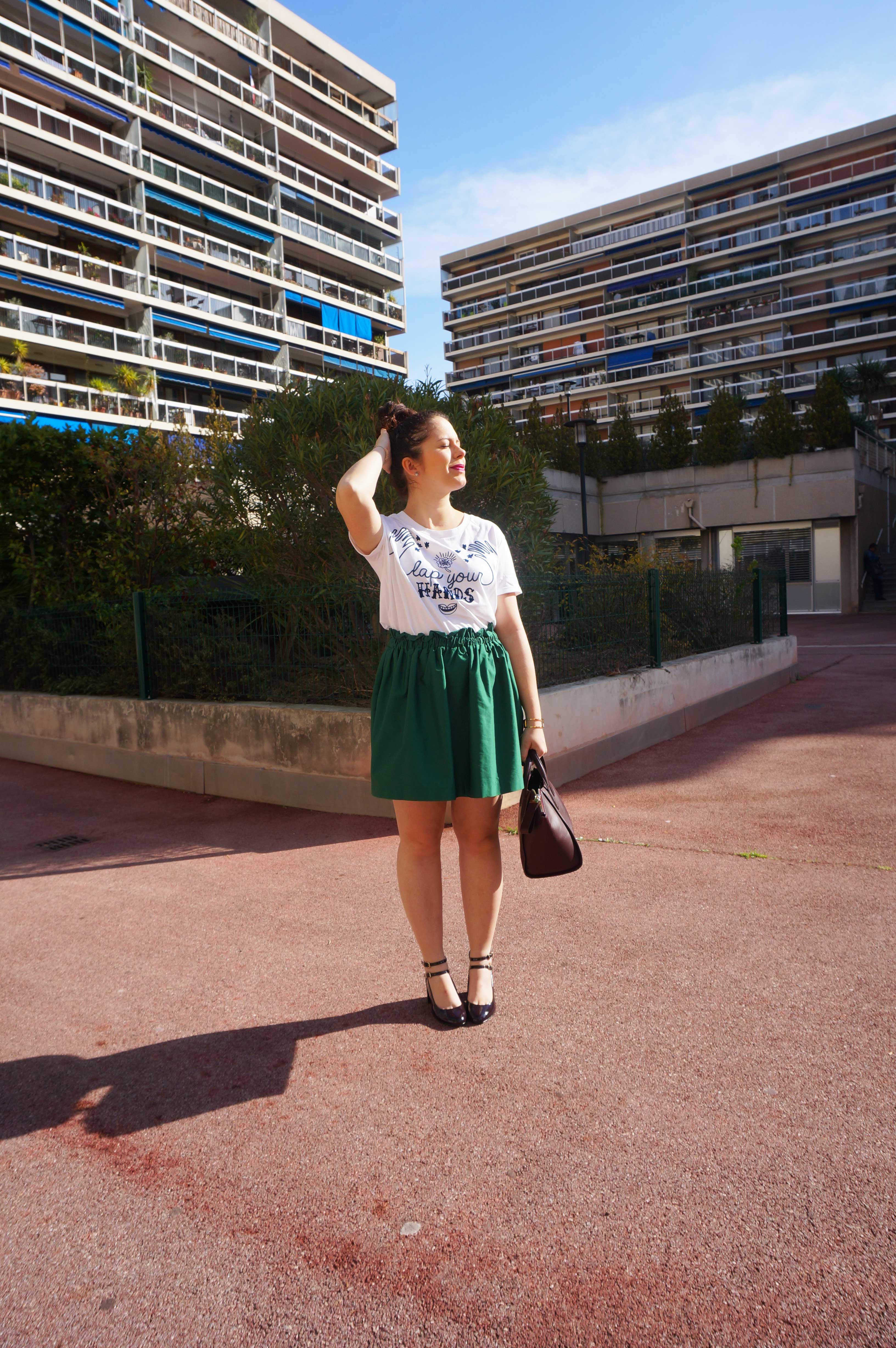 Je suis dingue de ton tee shirt et cette jupe verte est magnifique !