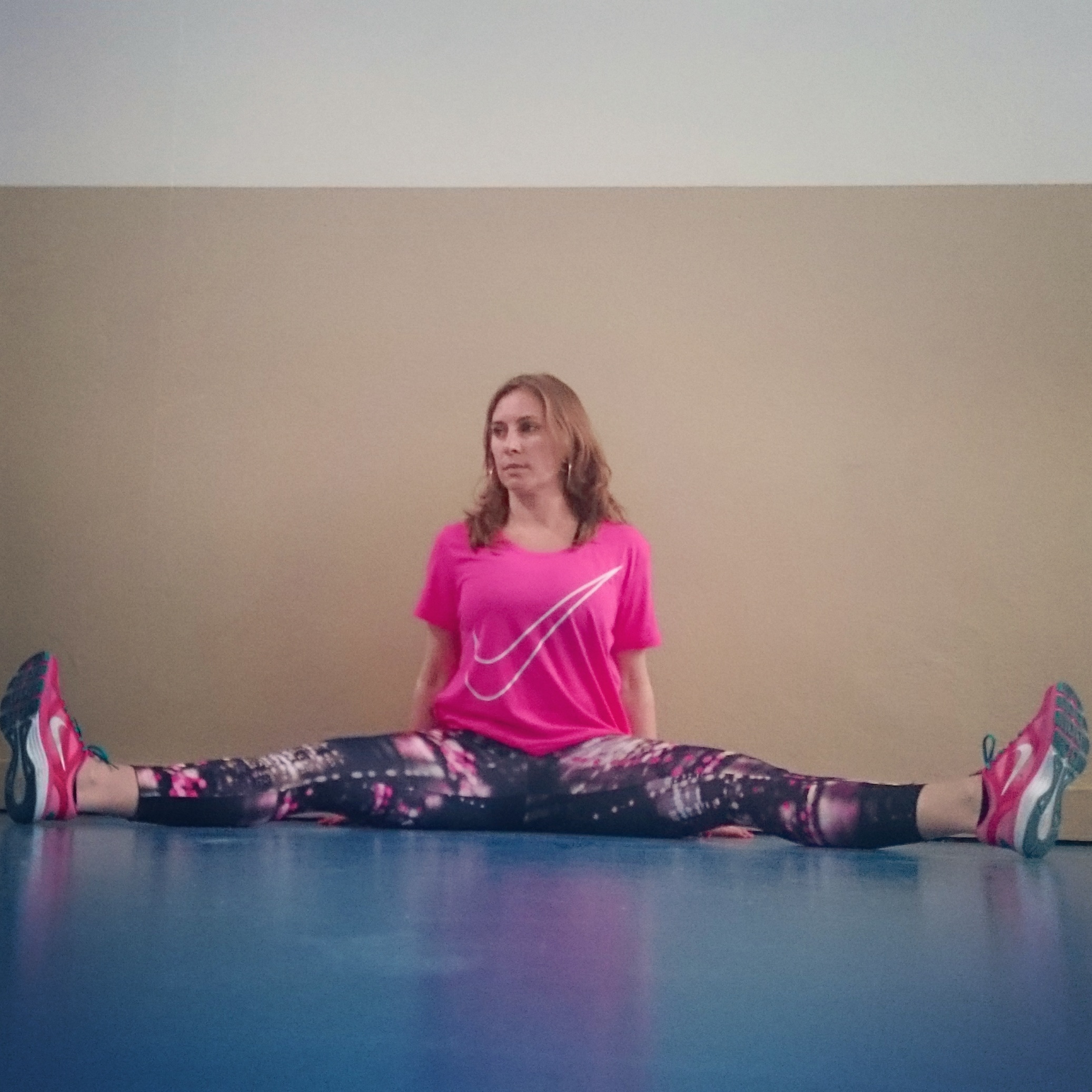 - Les adducteurs : jambes ouvertes, pieds en flexion, le dos bien droit, on peut éventuellement prendre appui sur ses mains derrière soi.