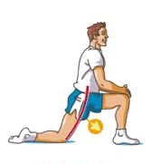 - Les quadriceps (avant de la cuisse) : un genou à terre, on appelle cela le « chevalier servant ». Attention à ne surtout pas cambrer son dos dans cette position. Au contraire, on serre le ventre pour garder son bassin bien positionné !