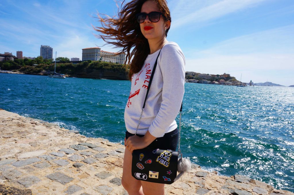 On a tous les deux craqué pour deux pièces qui nous correspondent : un sweat léger – parfait pour les apéros plage de cet été – pour moi et un tee-shirt très graphique pour Monsieur. Malheureusement, on voit beaucoup mieux le design de son tee-shirt sur son compte Instagram, que je vous invite vivement à follower si ce n’est pas déjà fait ;) C’est du côté du MuCem, en plein jour de mistral, que nous sommes allés immortaliser nos looks du jour. Pour ma part, c’est typiquement le genre de looks que je porte régulièrement depuis que j’ai repris le boulot et lâché ma casquette de blogueuse mode : un short, un sweat fin, un sac original et mes nouvelles Vans d’amour Princess Peach que vous avez pu déjà voir sur mon compte Instagram et ma page Facebook ;)