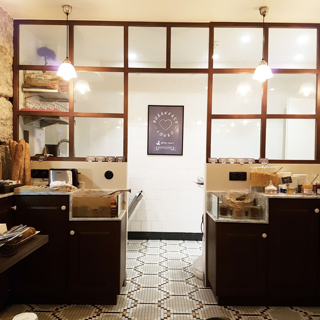 Le lendemain matin, on attend de découvrir le petit déjeuner avec impatience ! Celui-ci est très complet et on se régale ! La salle du petit déjeuner se trouver à l’étage -1, sous les voutes, et cela donne un petit côté industriel et vintage à l’endroit.