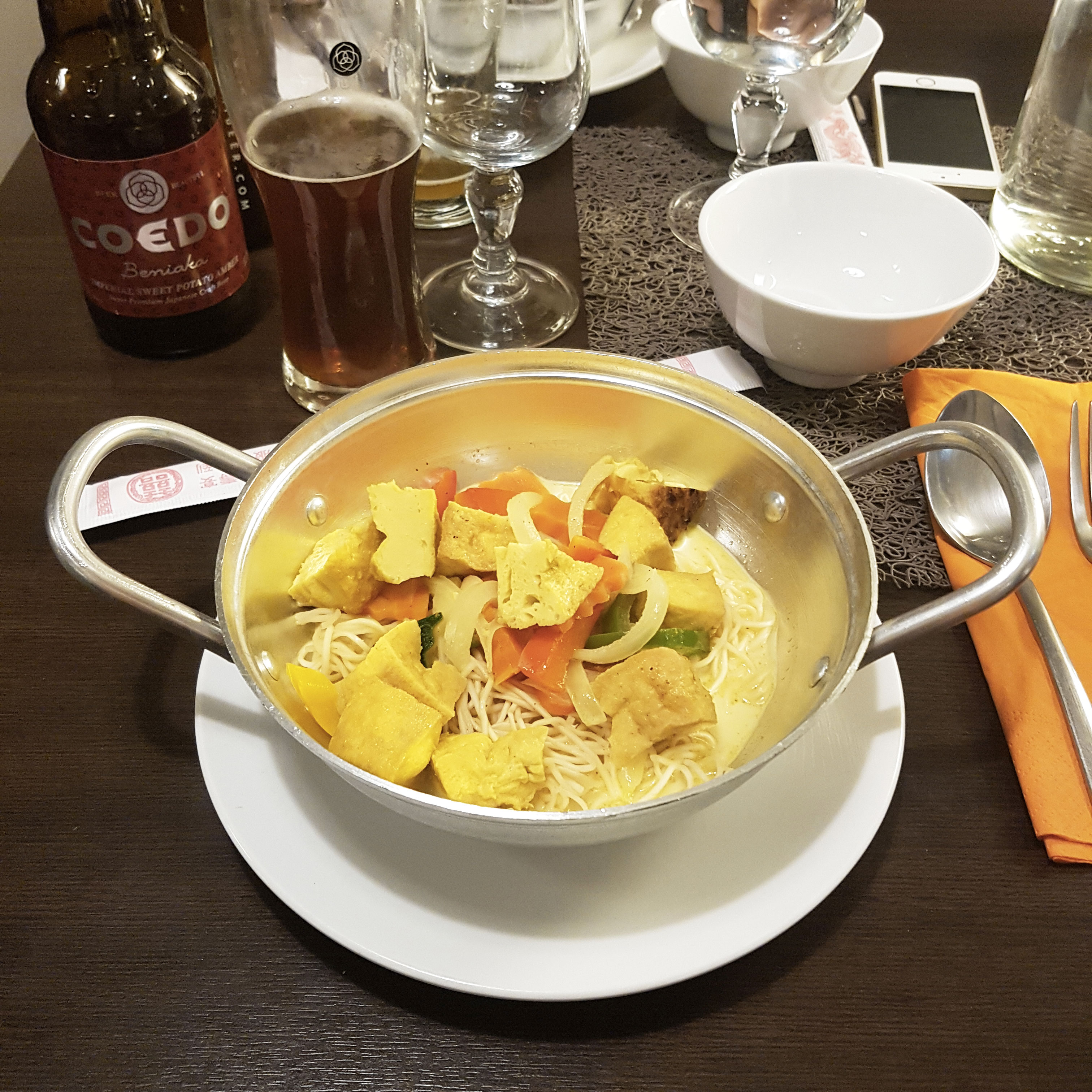 Forcément avec juste une soupe, je me lève en ayant super faim ! Une tranche d’osso irati, du blanc de dinde, un bol de muesli aux graines de chia et yaourt brassé 0% à l’ananas et deux biscottes me permettent de ne pas avoir faim jusqu’à l’heure du déjeuner. Pour le déjeuner, j’ai acheté chez Monoprix des raviolis à la tomate et au tofu, qui sont super bons et me calent jusqu’à l’heure du goûter. Je prends un yaourt pour me caler et patienter jusqu’à l’heure du diner, où je rejoins mes copines pour un repas 100% vegan à la Baie du Dragon à Marseille : samoussas au curry et légumes en entrée, nouilles au curry, légumes et tofu en plat et des nems chocolat/banane avec une chantilly vegan en dessert. On termine la soirée avec un passage au pub, pour prendre une bière.