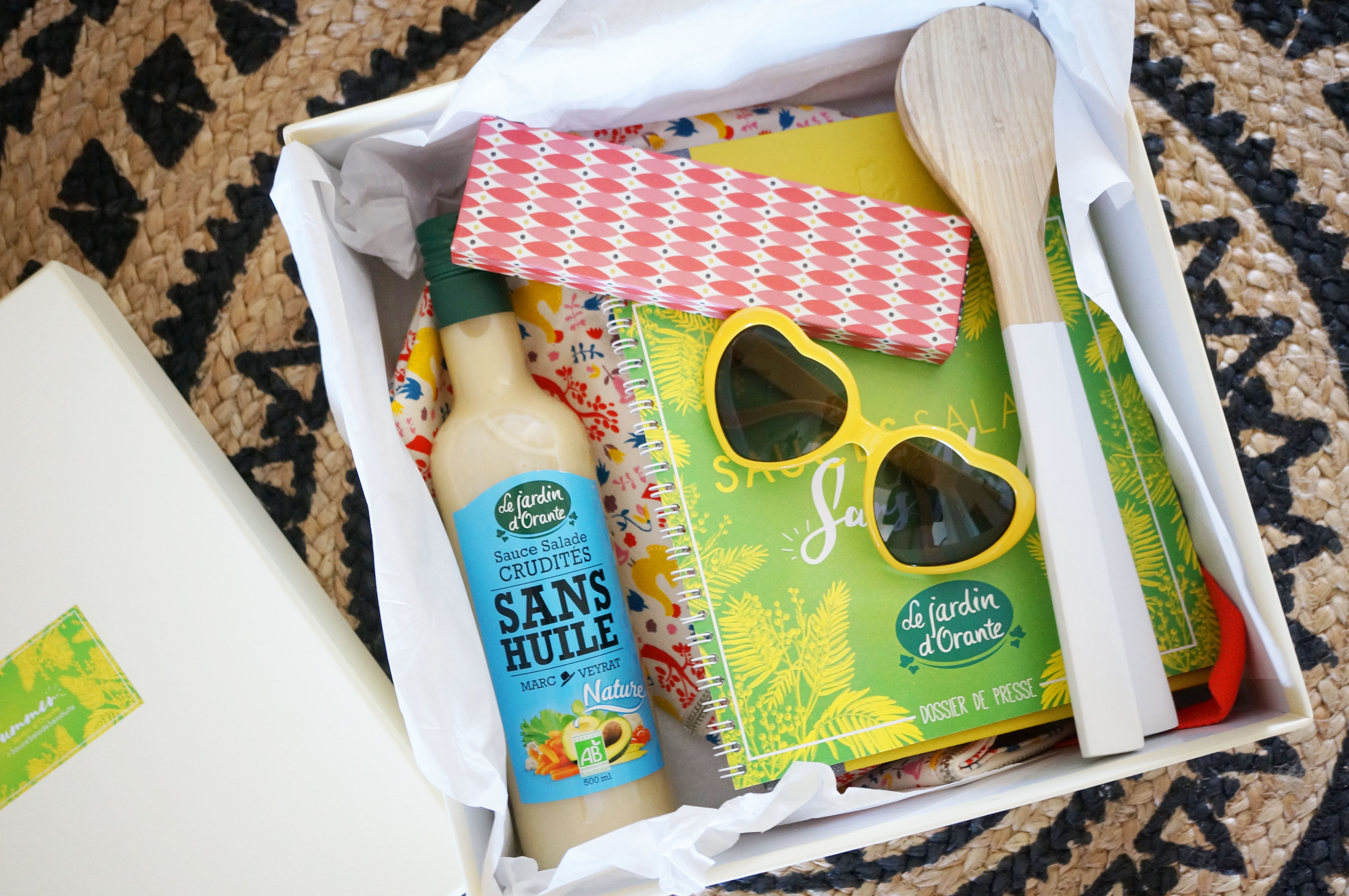 Du coup, comme on sait que vous êtes des petit(e)s gourmand(e)s par ici, on a décidé de vous offrir une box Healthy Summer comme celle que j’ai reçue ! ;) Elle contient donc la sauce salade Crudités sans huile imaginée par Marc Veyrat, mais aussi plein de jolis objets pour l’été de la marque Atomic Soda !