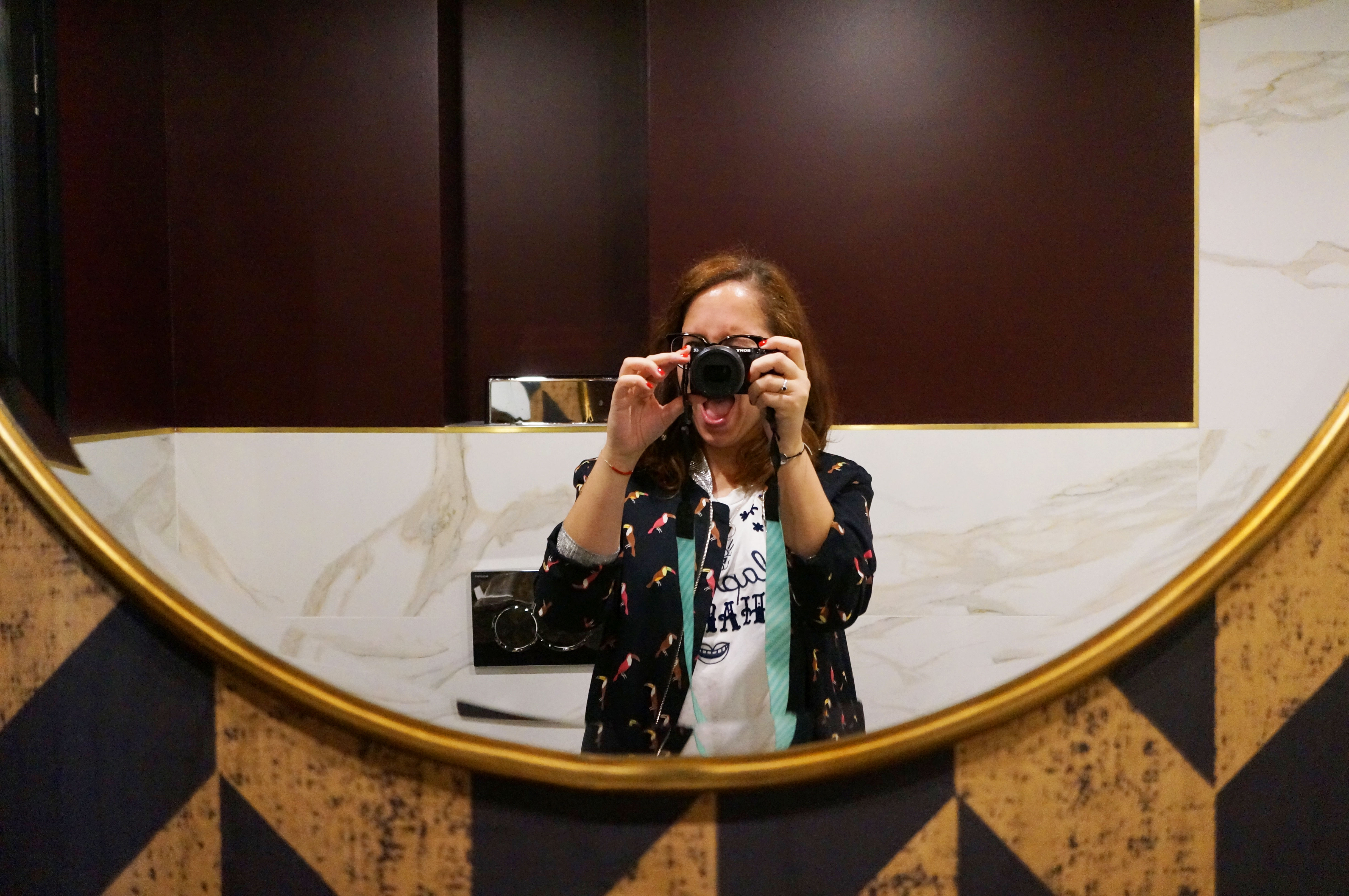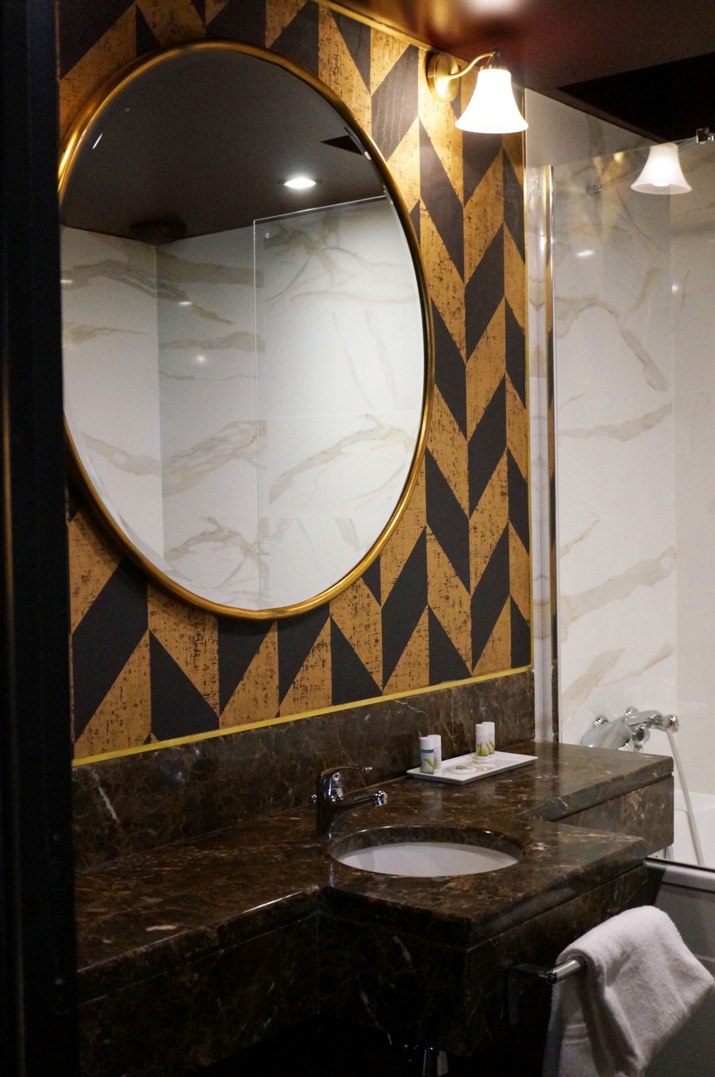 La salle de bains est immense, avec une grande baignoire dont j’ai évidemment bien profité ! Le grand miroir rond façon art déco est aussi sublime.