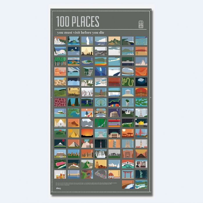 Un poster des 100 lieux que vous devez voir avant de mourir à 27.95€ ! Vous avez un(e) ami(e) fan de voyages ou au contraire quelqu’un qui ne sort jamais de chez lui ? Offrez lui ce chouette poster déco des 100 lieux à voir avant de mourir, ça devrait leur donner des idées ! ;)