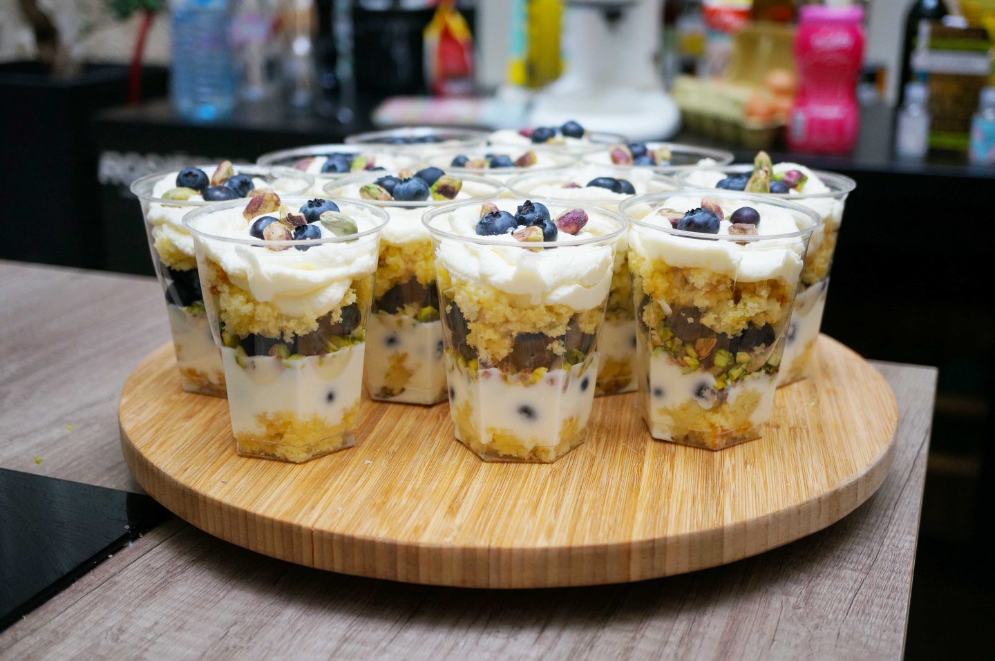 Mettez ensuite une couche du mélange de yaourt aux myrtilles & miel, puis une couche de pistache. Recommencez autant de fois que nécessaire.