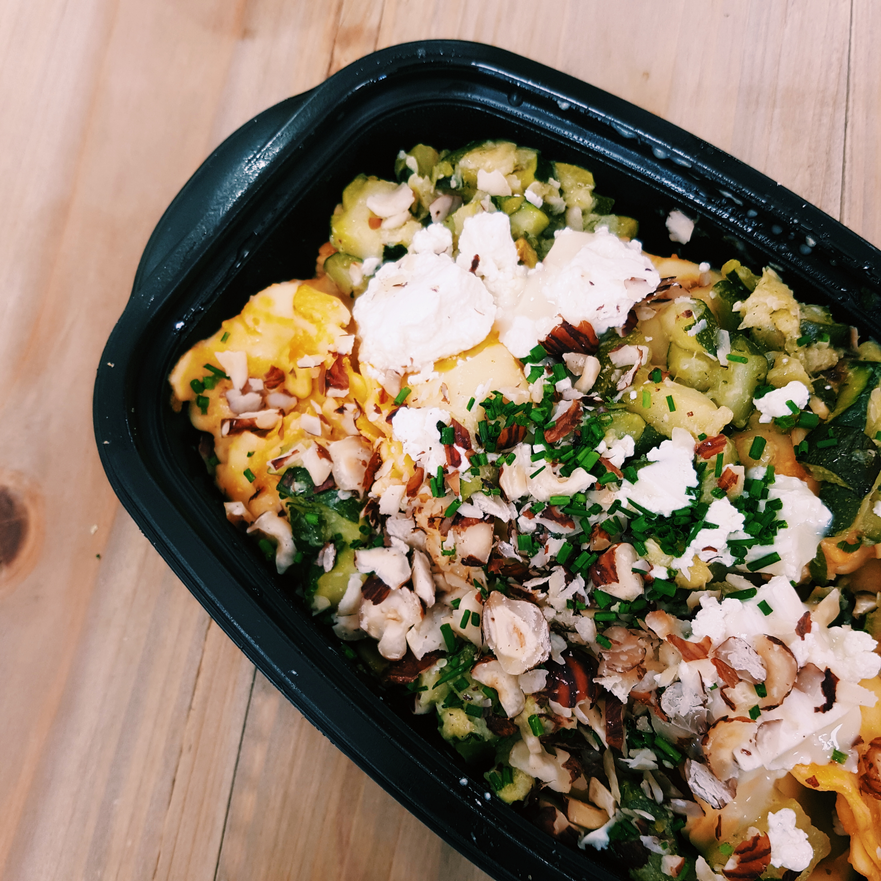 Le midi, je reçois ma commande Nestor Paris avec une salade tomate-pesto mais surtout des raviolis au fromage de chèvre, courgettes et noisettes à tomber ! Un délice ! En effet, on commande chez eux souvent le midi au bureau, et on se régale à chaque fois :)