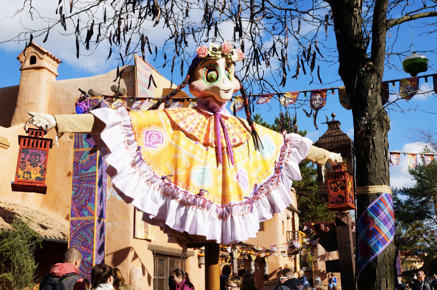 Mais plus qu’Halloween, c’est le « Dia de los muertos » qui est célébré jusqu’au 5 Novembre prochain. Le « Dia de los muertos », c’est l’équivalent de la Toussaint au Mexique. Une fête colorée, qui met à l’honneur les morts. Si le parc a décidé d’adopter la déco d’Halloween à la sauce mexicaine, c’est surtout car le 29 Novembre sort le tout dernier Pixar, « Coco ».
