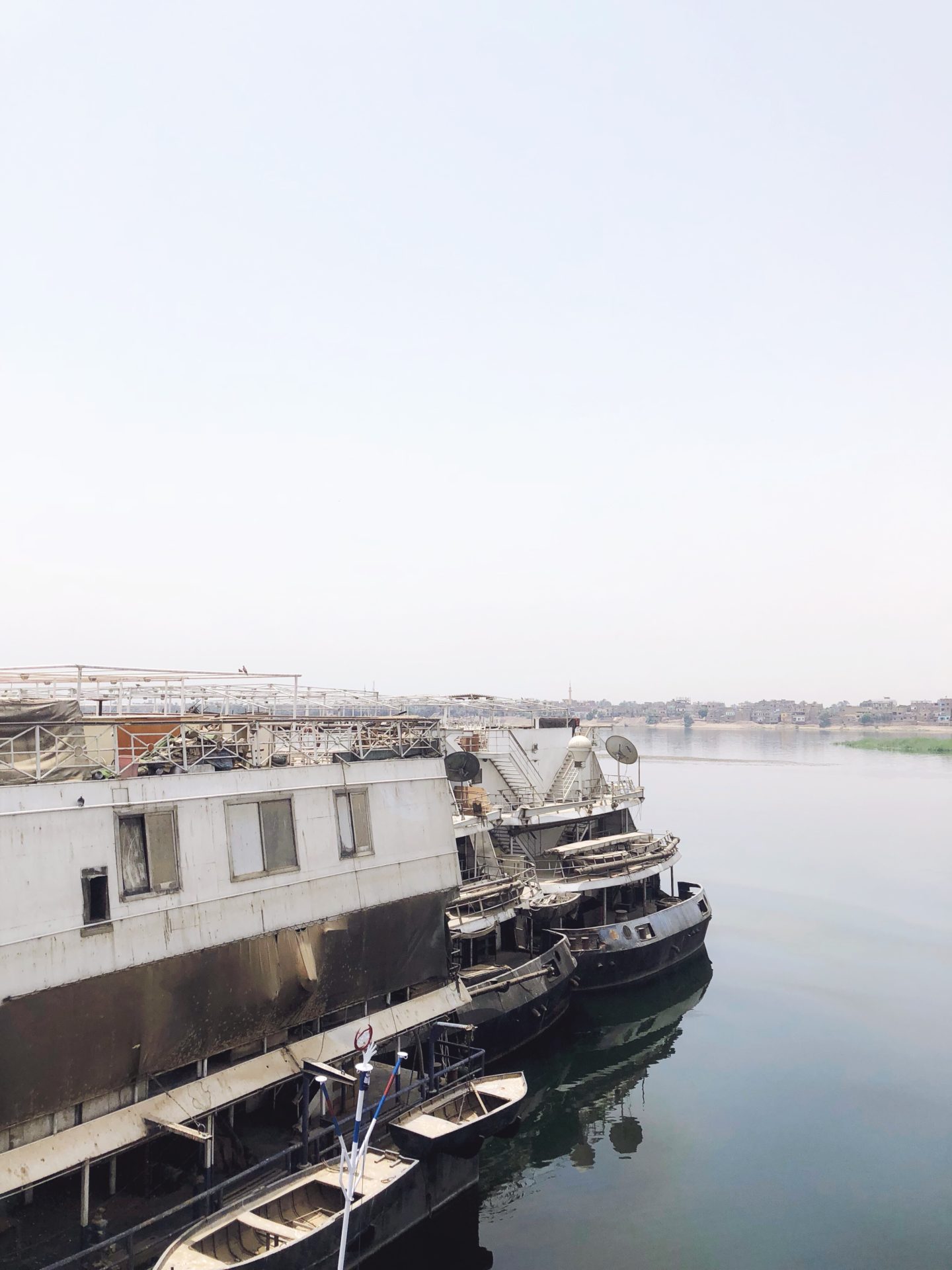 Nous étions sur un bateau un peu vieillot mais très propre. Le tourisme en Egypte n’étant pas au top, on peut voir sur les bords du Nil des bateaux de croisière laissés à l’abandon, comme des pavillons fantômes…