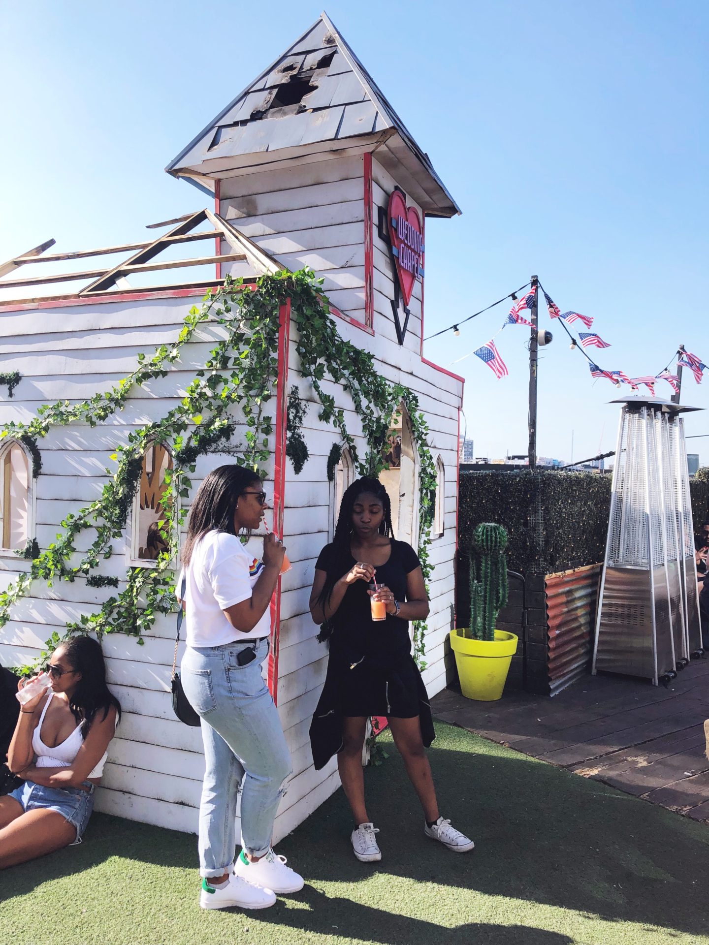 Rien de mieux pour commencer son séjour à Londres sous un grand soleil par un rooftop ! Manon nous a emmené au Queen Of Hoxton, un rooftop situé par très loin de la station de Liverpool Street. Après avoir gravi les marches qui mènent jusqu’en haut du bâtiment – ça se mérite ! – arrivée dans un décor à la mode Las Vegas, entouré des buildings d’affaires de Liverpool Street ! Dépaysement garanti ;)